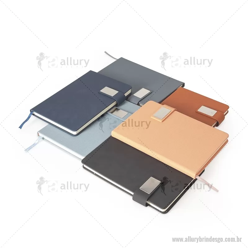 Caderneta de capa dura confeccionada em couro sintético, com acabamento elegante e fecho magnético para maior praticidade. Possui placa metálica personalizável na capa, ideal para aplicação de logotipo ou nome. Conta ainda com marca-página em fita de cetim e aproximadamente 96 folhas internas brancas pautadas, proporcionando organização e conforto na escrita. - - ALLGOBLC281