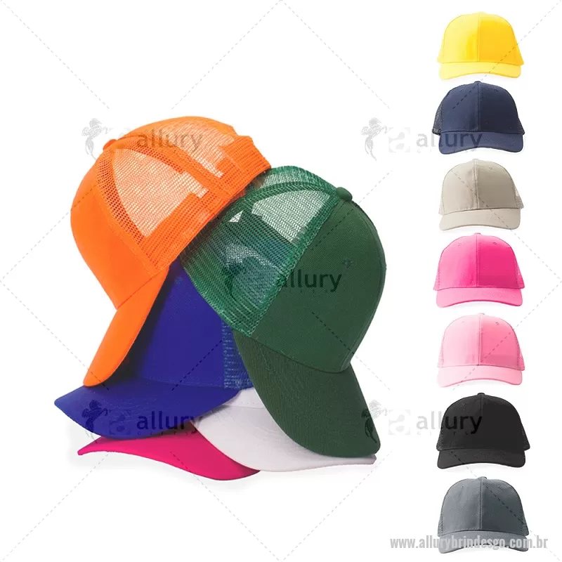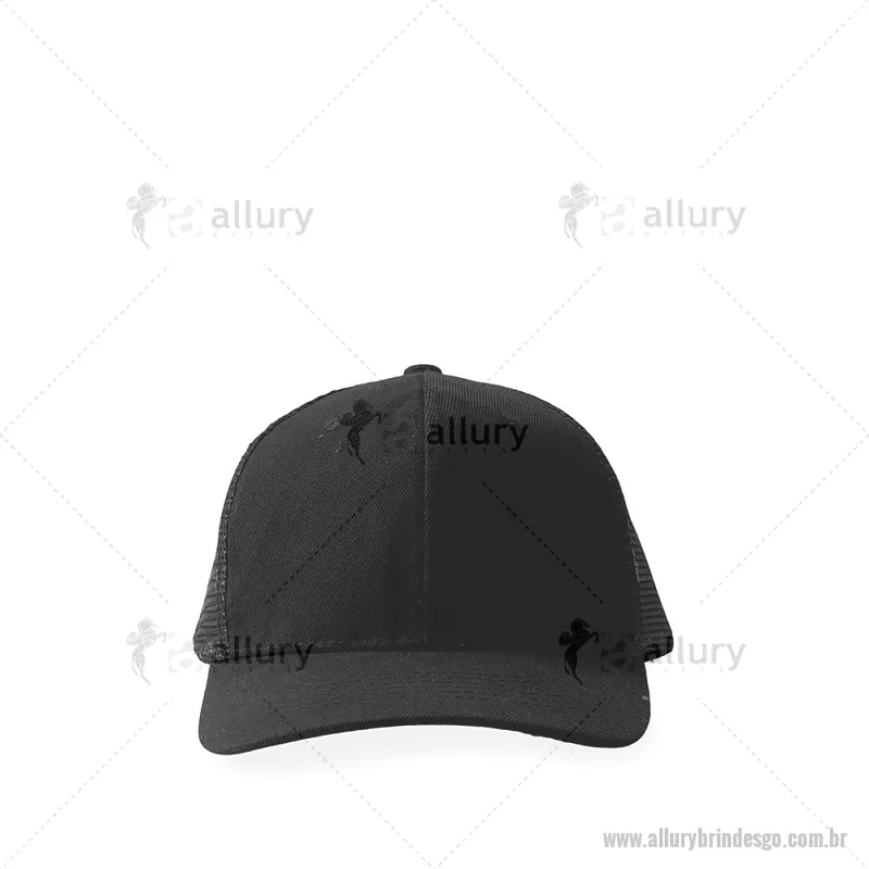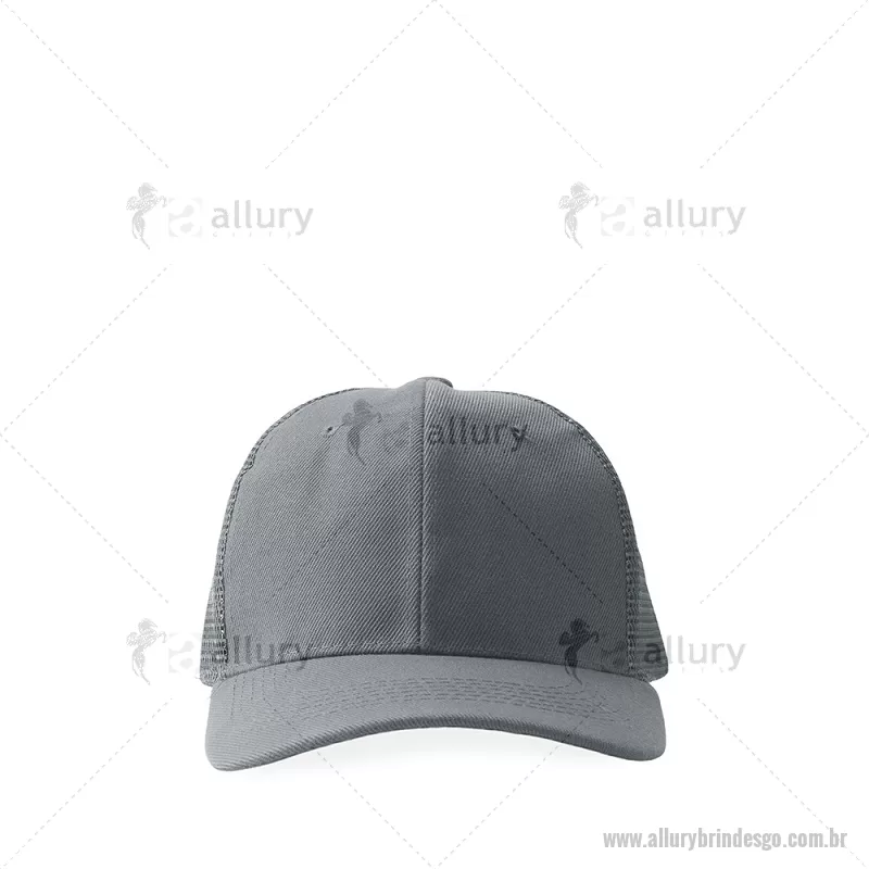 Boné de aba curva em poliéster com laterais em tela de nylon respirável. Possui fecho plástico ajustável na parte traseira, garantindo conforto e praticidade no uso diário. - - ALLGOBON011
