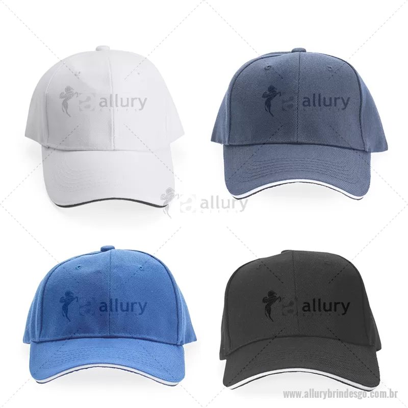 Boné Poliéster Aba Curva Descrição: Boné confeccionado em poliéster resistente a respingos dágua e com aba curva. Em tamanho único, ele é ajustável por meio de suas faixas de velcro na parte de trás. Altura : 13 cm x Largura : Aba: 18 cm Profundidade : Aba: 7 cm x Circunferência : 55,5 cm Peso aproximado (g): 73 - - ALLGOBON010