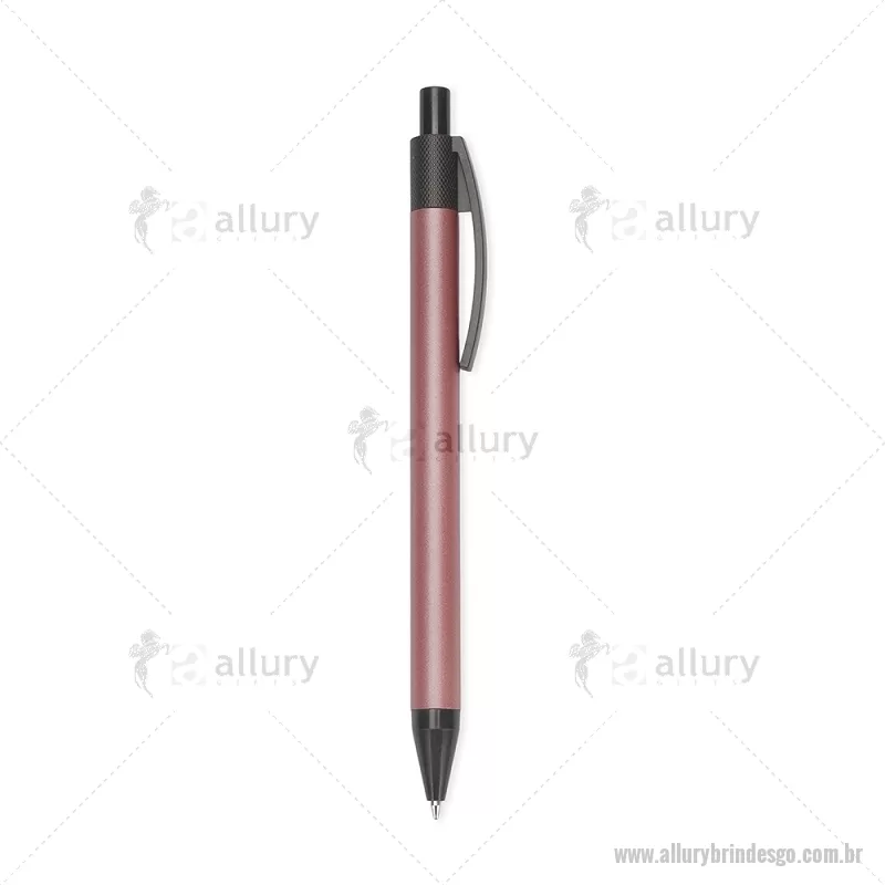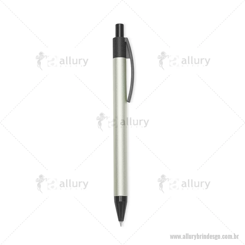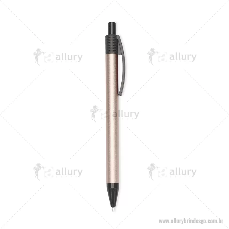 Caneta com corpo em metal, ponteira e clip em plástico, equipada com acionamento por clique. Possui carga esferográfica azul de 1,0 mm, garantindo escrita suave, leve e precisa para o uso diário. - - ALLGOCMT301