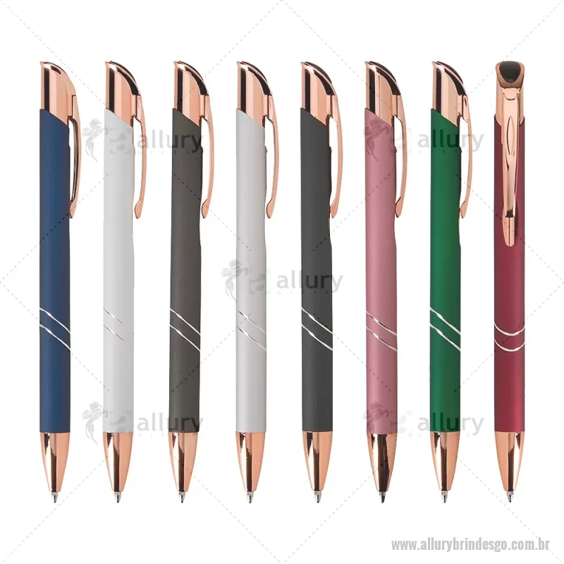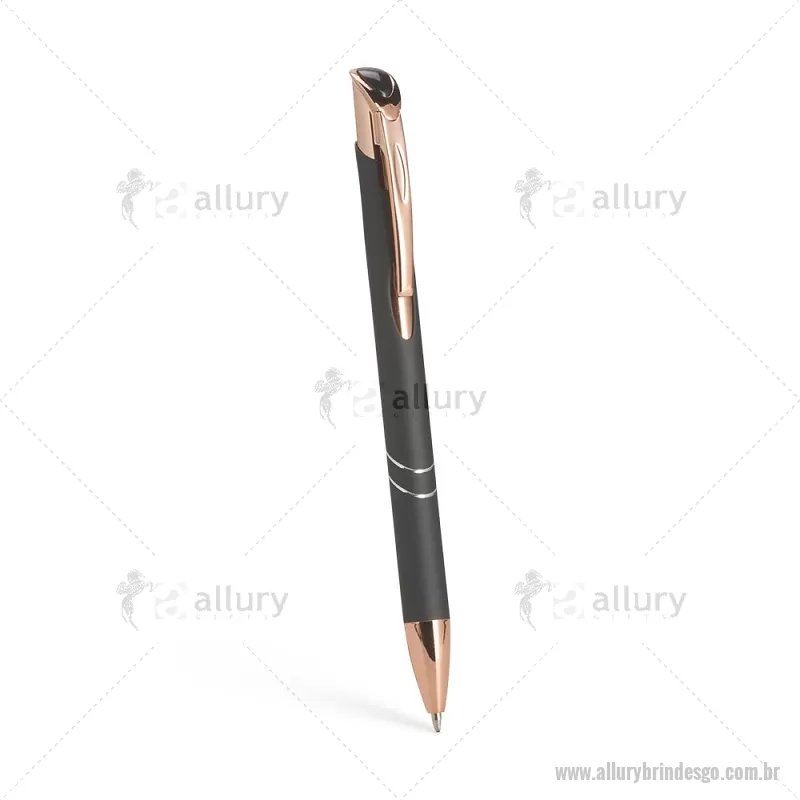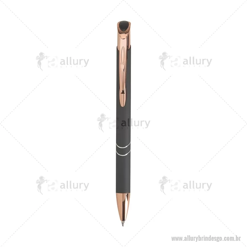Caneta esferográfica com corpo metálico e detalhes em plástico, acionamento por clique e carga azul de 1,0 mm. Leve e confortável, garante escrita suave e precisa para o uso diário. - - ALLGOCMT304