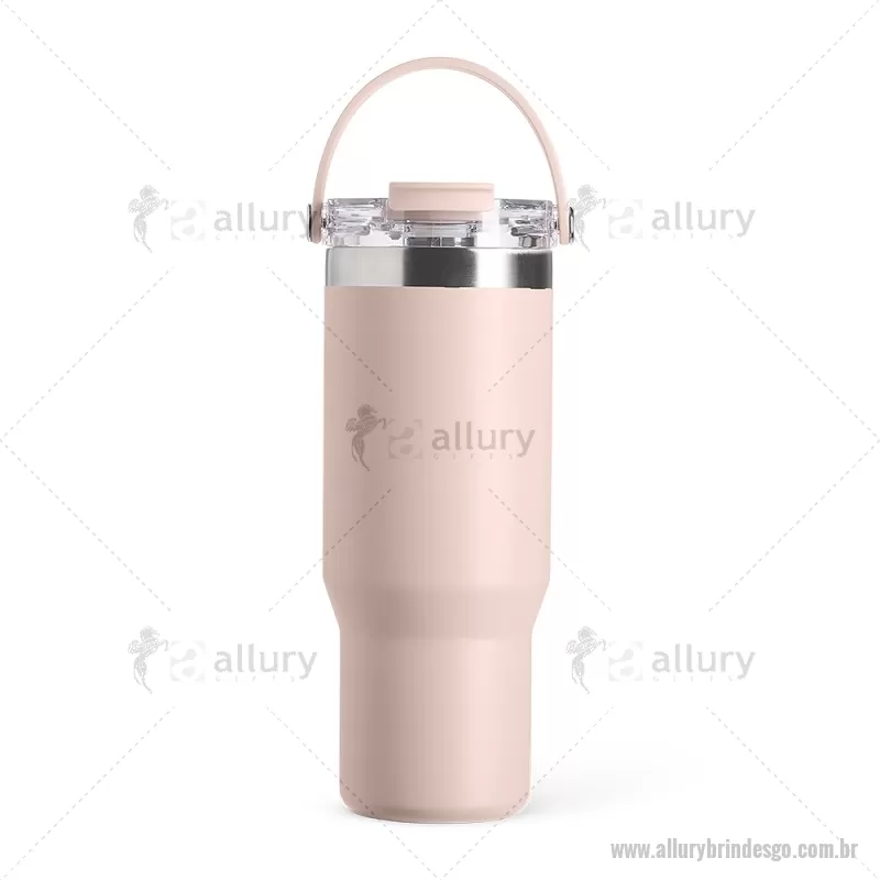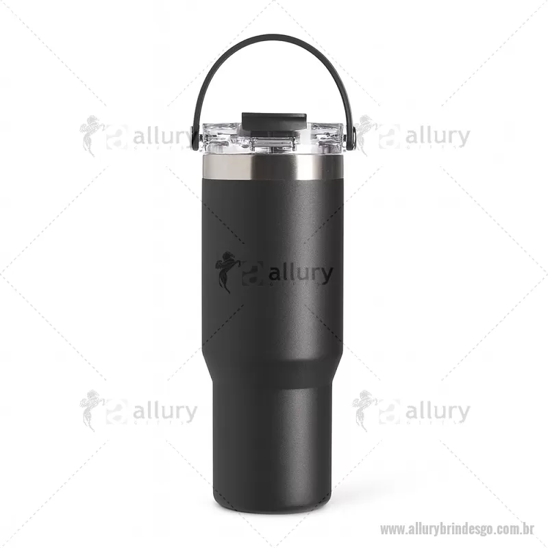 Copo térmico de 900 ml em aço inox com parede dupla, ideal para manter a temperatura de bebidas por mais tempo. Possui tampa plástica rosqueável com vedação a vácuo, proteção para o bocal, bico flip com canudo interno removível e alça para transporte. Conta com acabamento em pintura eletrostática, garantindo durabilidade e visual sofisticado. - - ALLGOCPO146