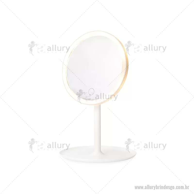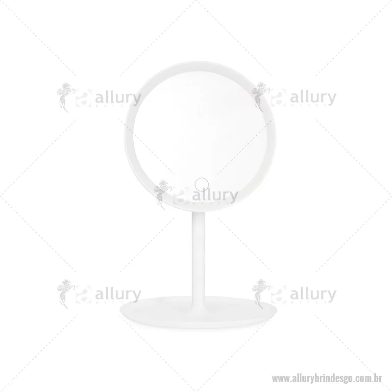 Espelho de Mesa Plástico com LED Descrição: Espelho de mesa com estrutura plástica de fácil montagem e rotação de até 90 graus. Possui iluminação em LED recarregável com três níveis de intensidade ajustáveis pelo botão de toque no espelho. Acompanha cabo USB-C. Altura : 30 cm x Largura : 18,5 cm Tamanho total aproximado (CxL): Diâmetro: 15 cm Peso aproximado (g): 273 - - ALLGOFEM117