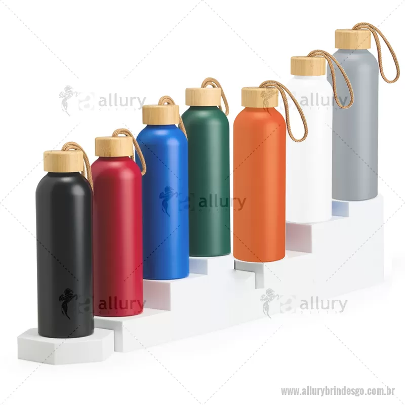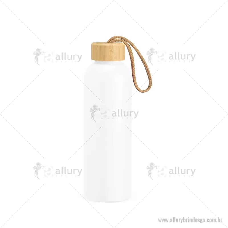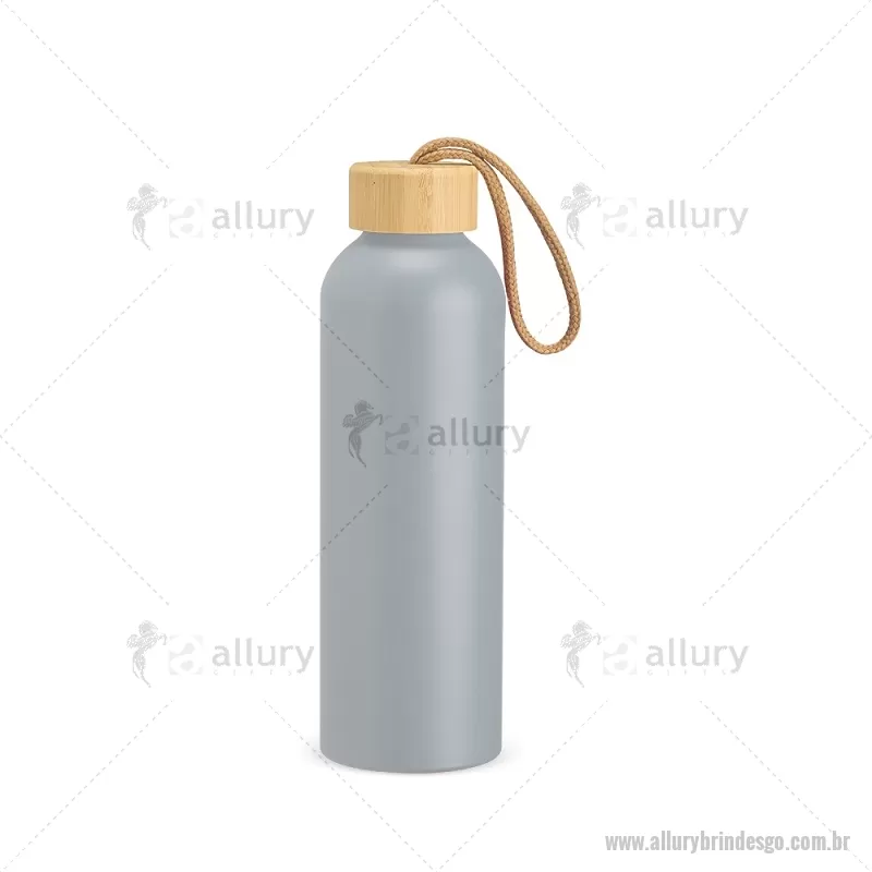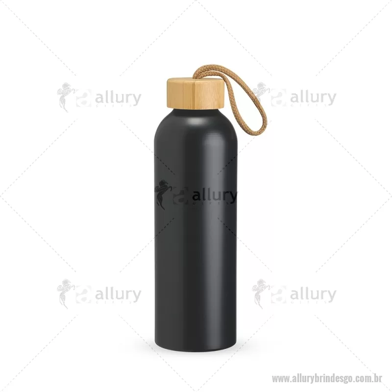 Garrafa em alumínio com capacidade máxima de 800ml. Possui tampa rosqueável em bambu com alça de algodão para facilitar o transporte. Altura : 23,5 cm x Largura : 7 cm x Circunferência : 23 cm Peso aproximado (g): 111 - - ALLGOGAR155