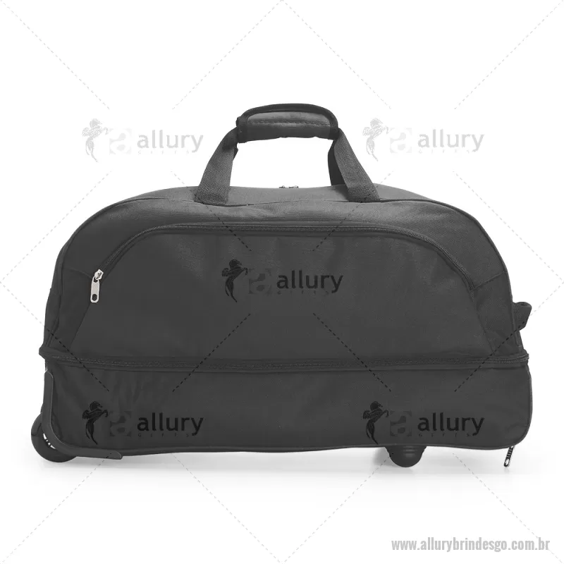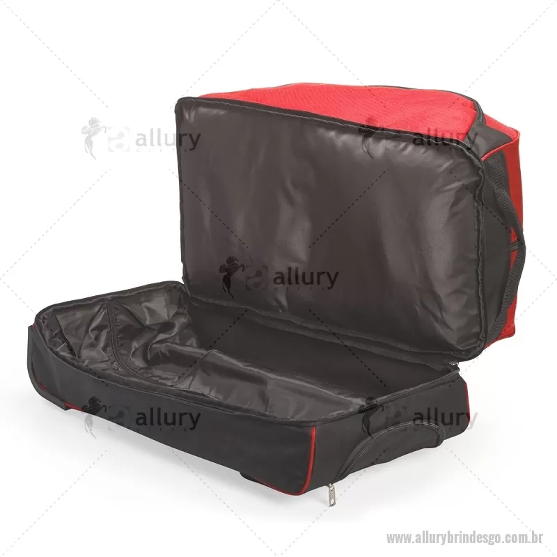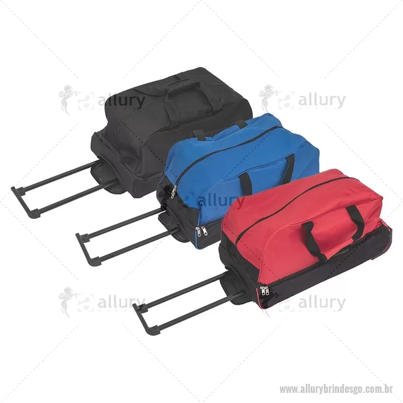 Mala versátil com capacidade de 51 litros, confeccionada em poliéster resistente à água. Possui quatro compartimentos funcionais, incluindo um espaço específico para armazenar o puxador. Oferece praticidade no transporte com alças de mão com fecho em velcro, puxador retrátil e duas rodinhas, além de contar com base reforçada e pés de apoio para maior estabilidade. Ideal para o dia a dia ou viagens curtas. - - ALLGOMC251