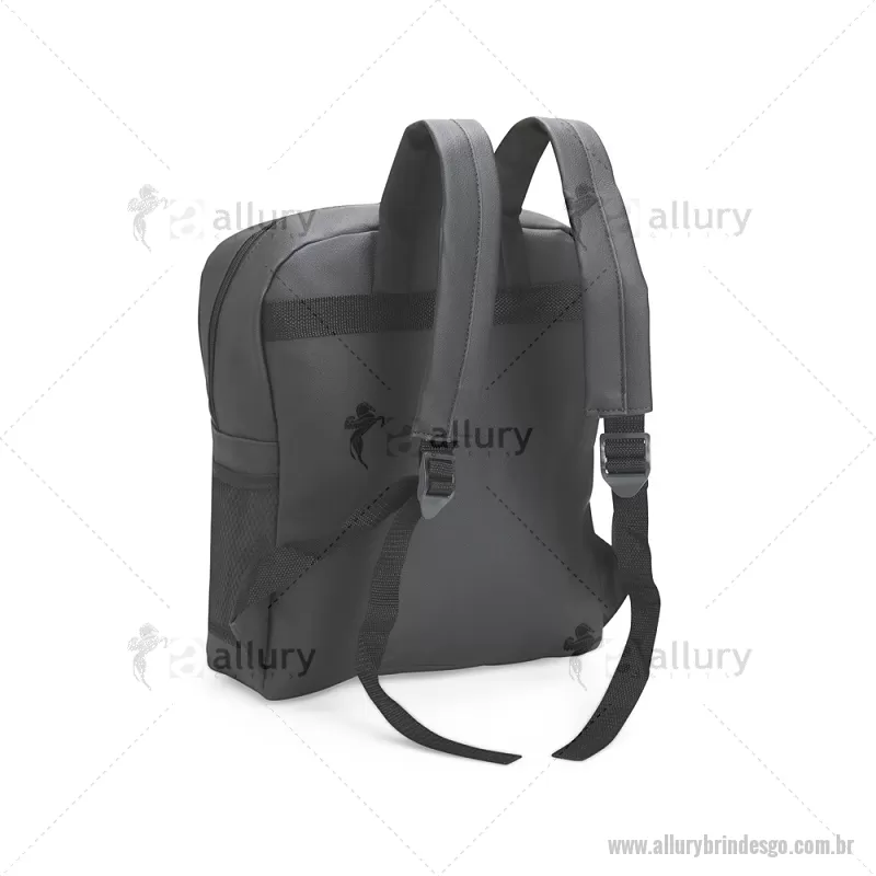 Mochila em couro sintético impermeável, com fechamento em zíper e capacidade de até 20 litros. Possui compartimento interno com divisória para notebook de até 14”, além de bolso frontal com plaquinha decorativa e dois bolsos laterais em tela de nylon. Prática e ideal para o uso diário. - - ALLGOMC249