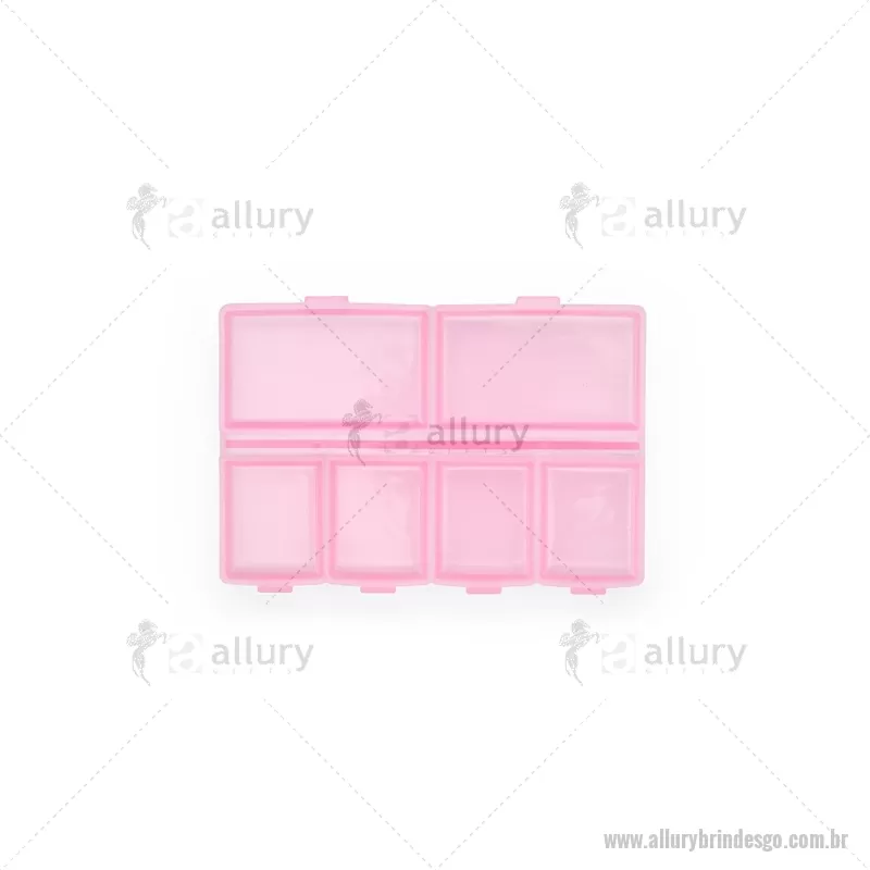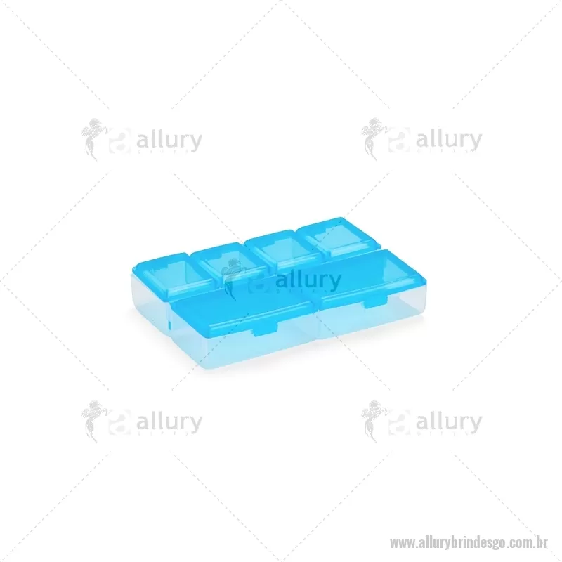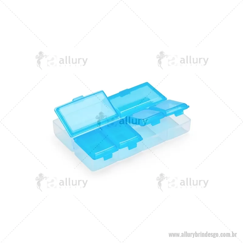 Porta-Comprimidos Plástico Descrição: Porta-comprimidos em plástico com seis compartimentos, dois maiores e outros quatro menores, oferecendo mais possibilidades de organização. Largura : 6,4 cm x Espessura : 1,9 cm x Comprimento : 9,5 cm Peso aproximado (g): 23 - - ALLGOPCP015
