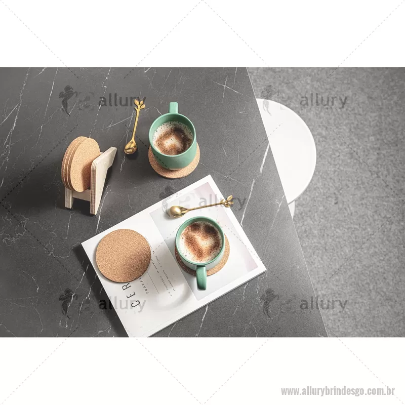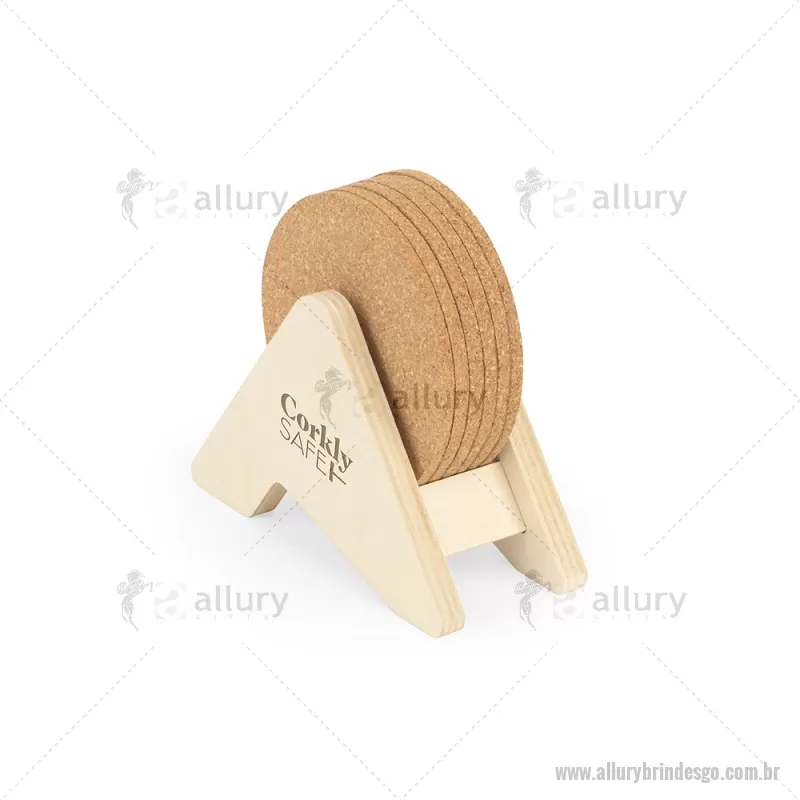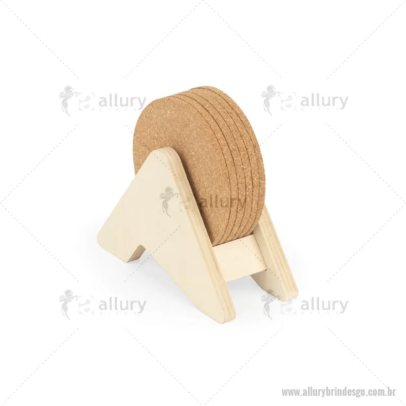 Porta copos em madeira com 6 bases para copos em cortiça. Desfrute da sua bebida evitando marcas na mesa. Certificação EU Food Grade. A cor e o resultado da impressão nos materiais naturais pode variar entre produtos. medidas: 140 x 92 x 78 mm Peso do Produto (g.): 80 - - ALLGOPCO010