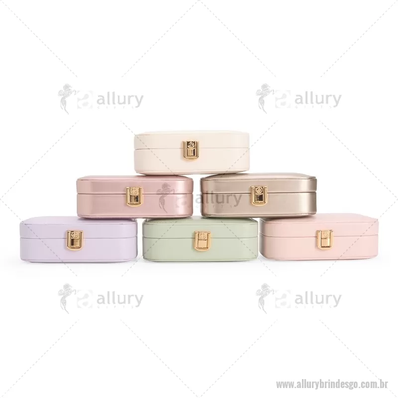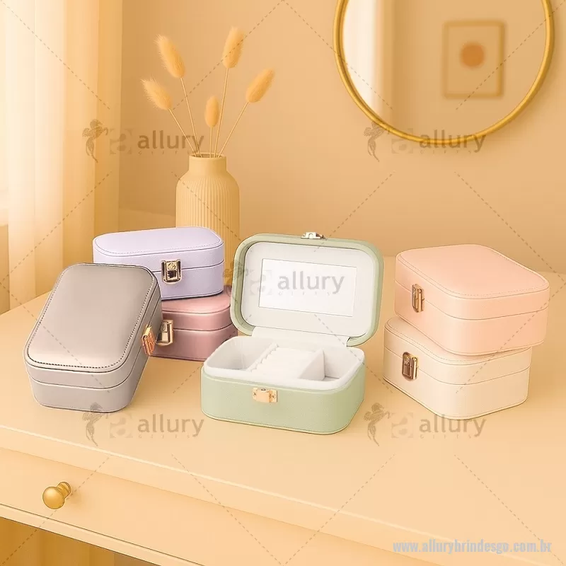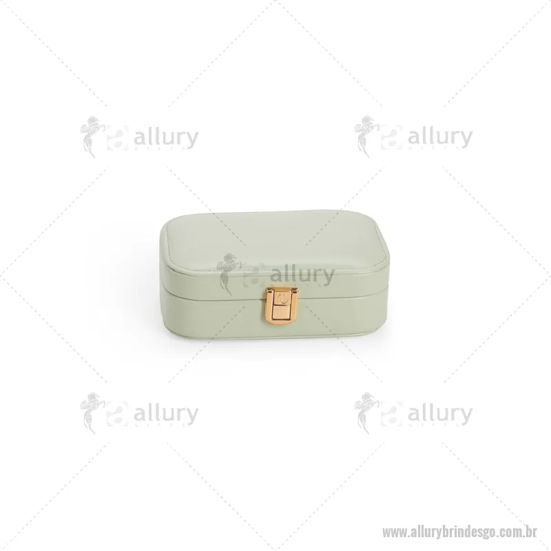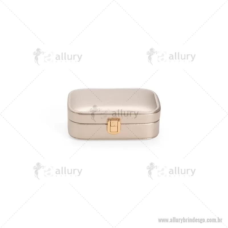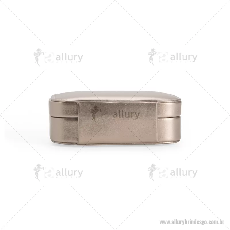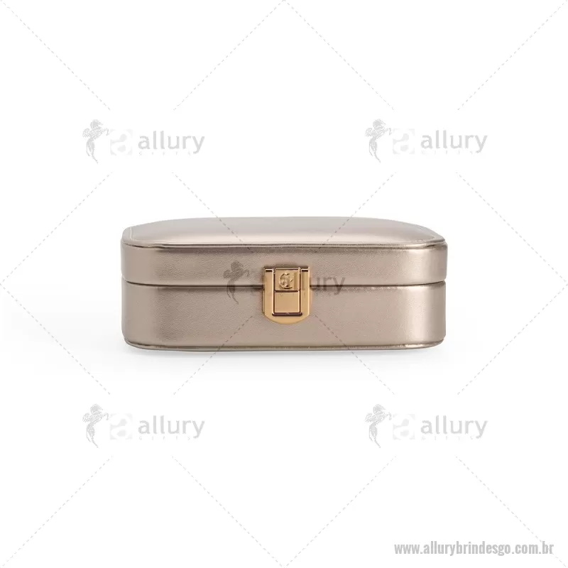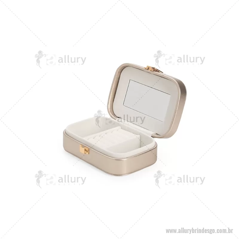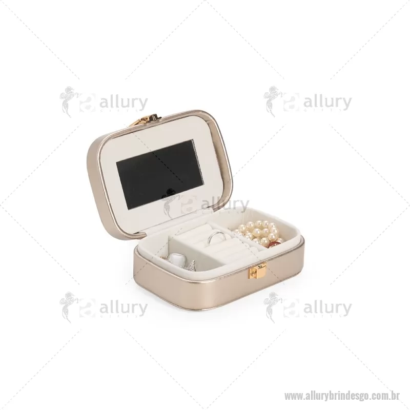 Porta-joias com espelho em poliuretano (PU) e revestimento interno em tecido aveludado. Conta com espelho interno, duas divisórias, repartição almofadada com ranhuras e trava de segurança. Medidas produto: Altura : 5 cm x Largura : 10 cm x Comprimento : 15 cm Peso aproximado (g): 167 - - ALLGOFEM123