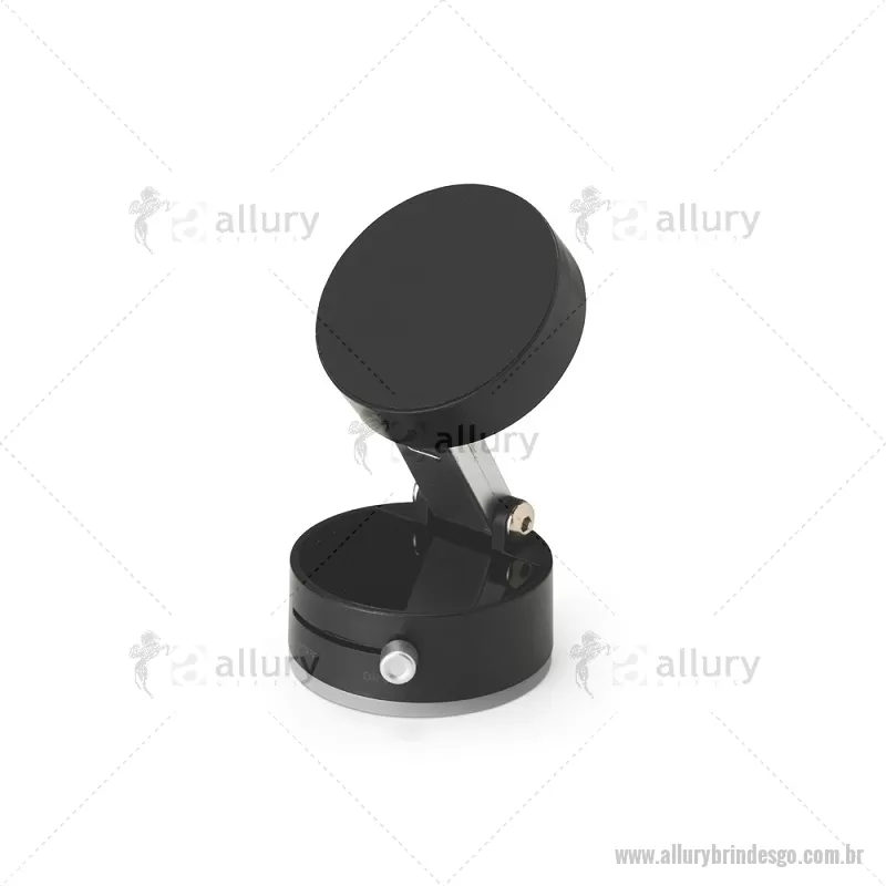 Suporte magnético para smartphones feito em plástico, com ajuste de inclinação e ventosa retrátil acionada por chave seletora para fixação em superfícies lisas. Permite uso do aparelho na vertical ou horizontal por meio do encaixe magnético, compatível com celulares com função magnética ou com anel adaptador. Acompanha dois anéis magnéticos adesivos, um adesivo em policarbonato, kit de limpeza e chave Allen. - - ALLGOTEC536