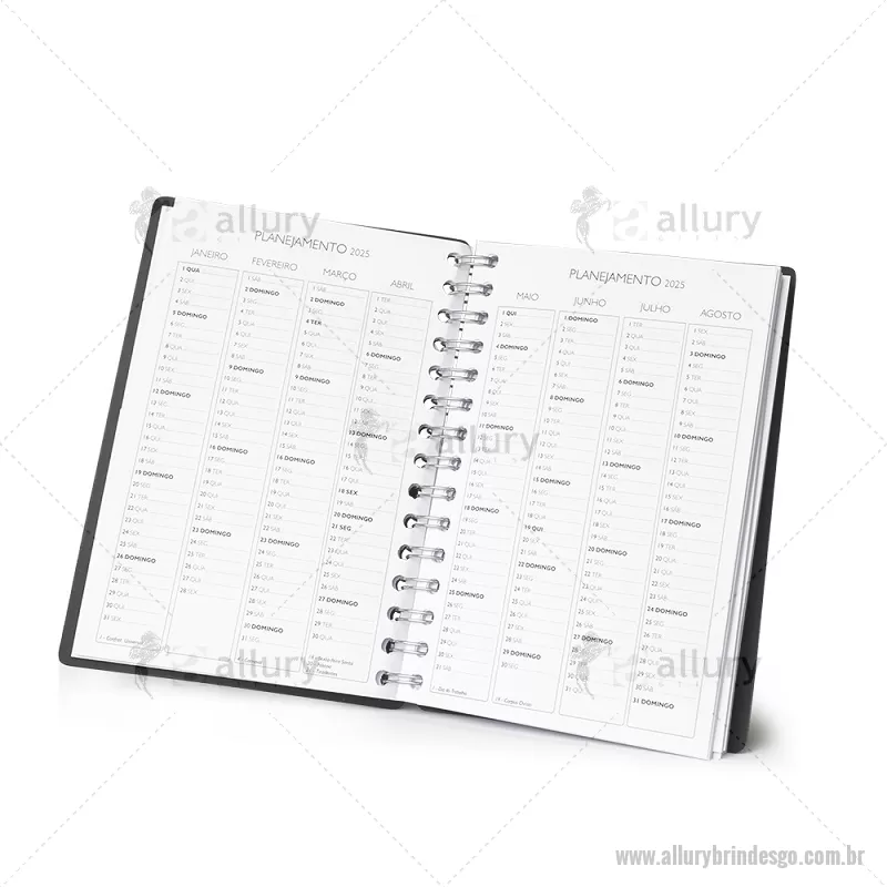 Agenda diária 2025 com espiral, material plástico para lacre. Contém folha com bolso duplo, folhas para preenchimento de dados pessoais, calendários 2024 a 2026, planejamento, receitas e despesas mensais, agenda telefônica, mapa do Brasil, mapa mundi e acompanha régua marca página de papel com 15 cm. Altura : 20 cm x Largura : 14,6 cm x Espessura : 2,1 cm Peso aproximado (g): 350 - - ALLGOAGE030