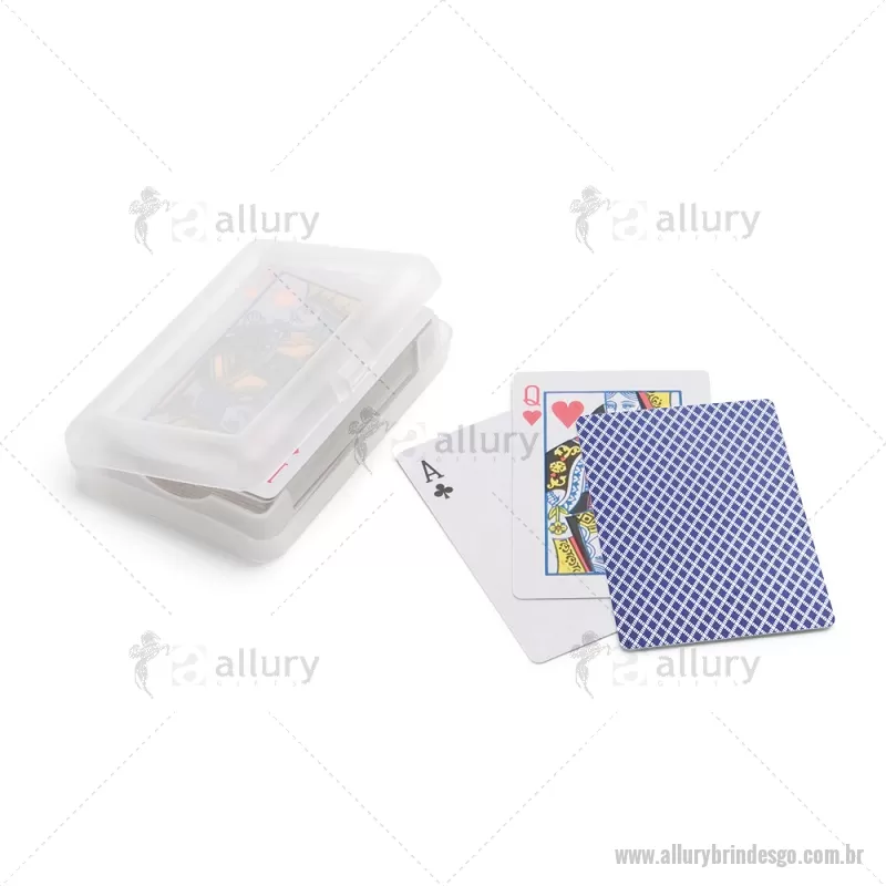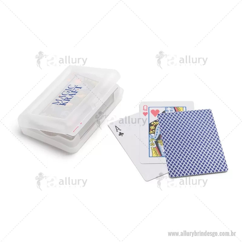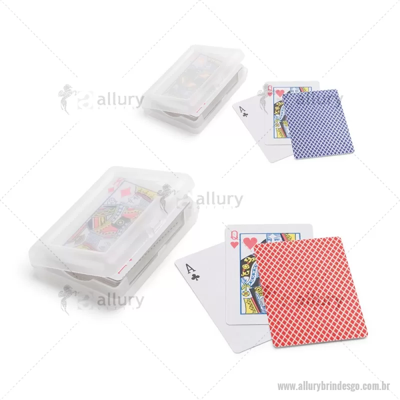 Baralho de 54 cartas em papel plastificado. Fornecido numa caixa rígida / estojo em PP. Medidas: 100 x 70 x 20 mm Peso do Produto (g.): 94 - - ALLGOJOG010