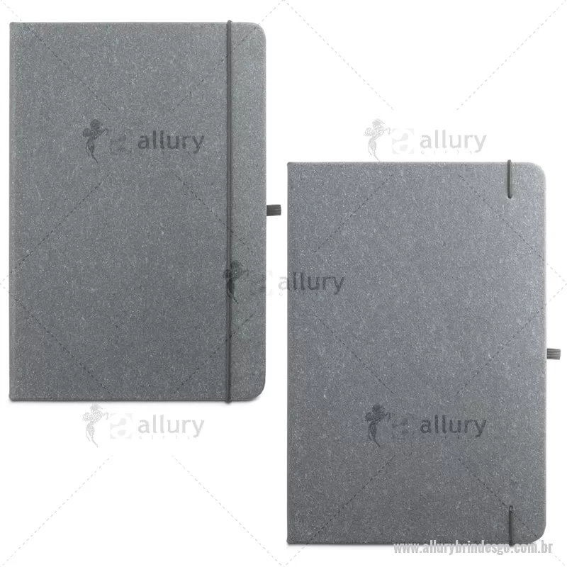 Bloco de anotações A5 em couro reciclado com 192 páginas pautadas cor marfim, em papel proveniente de gestão florestal sustentável. Suporte para esferográfica (não incluída), elástico e fita separadora em preto. Contém bolso interior. Fornecido em envelope preto de cartão. 140 x 210 mm - - ALLGOBLC207