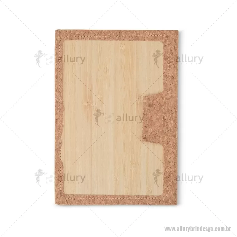 Caderneta de bambu com detalhe em cortiça. Possui aproximadamente 96 folhas brancas pautadas e suporte para caneta. Altura : 21 cm x Largura : 14,9 cm x Espessura : 1,5 cm Peso aproximado (g): 32 - - ALLGOBLC236