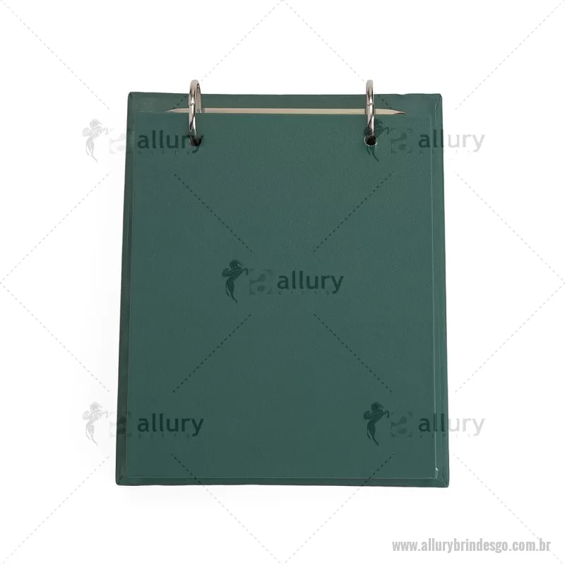Bloco de anotações de mesa com trilho em ferro e capa dura em percalux. Conta com cerca de 150 folhas brancas sem pauta, todas com área destacável para facilitar o uso diário. - - ALLGOBLC272