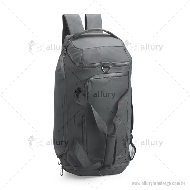 Bolsa em filme sintético tipo couro impermeável, com capacidade de 35 litros. Possui compartimento interno amplo com dois bolsos em tela e zíper, além de cinco bolsos externos. Conta com alças de mão, alças ocultas que permitem uso como mochila e alça transversal removível. Versátil e prática para diversas ocasiões. - - ALLGOBOL049