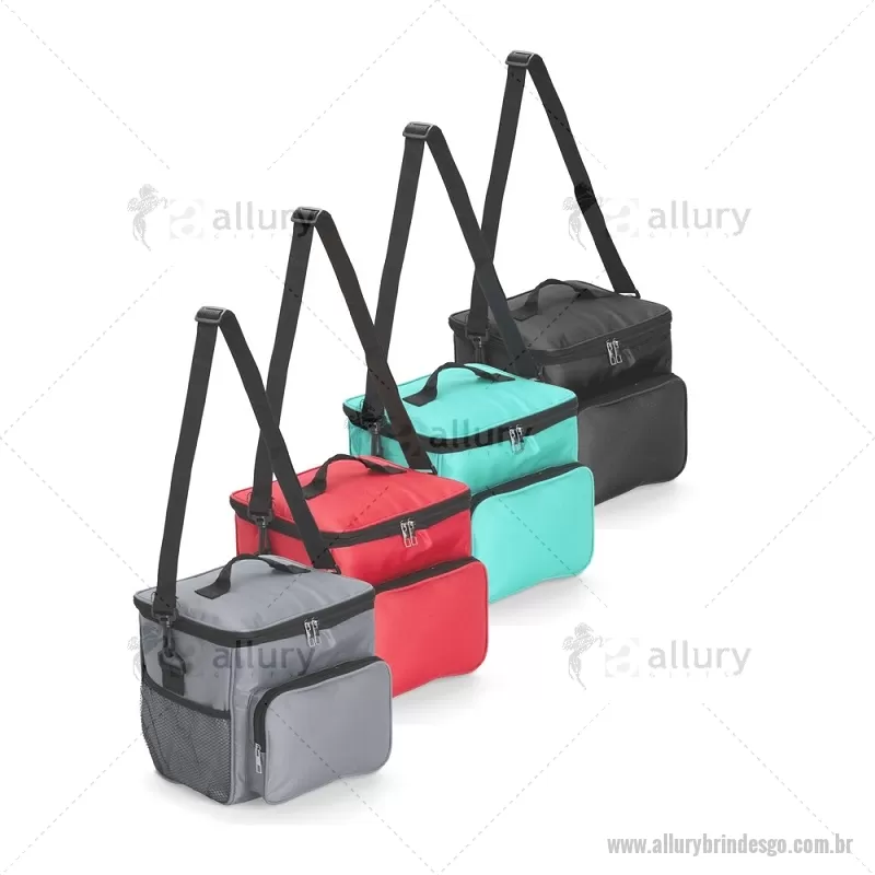 Bolsa térmica de 11 litros feita em Oxford resistente à água, com revestimento interno em alumínio para melhor conservação de temperatura. Conta com bolso frontal, dois bolsos laterais em tela, alça fixa na tampa e alça transversal. Prática e ideal para transportar alimentos e bebidas no dia a dia. - - ALLGOBT099