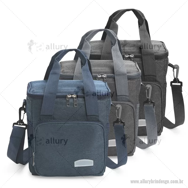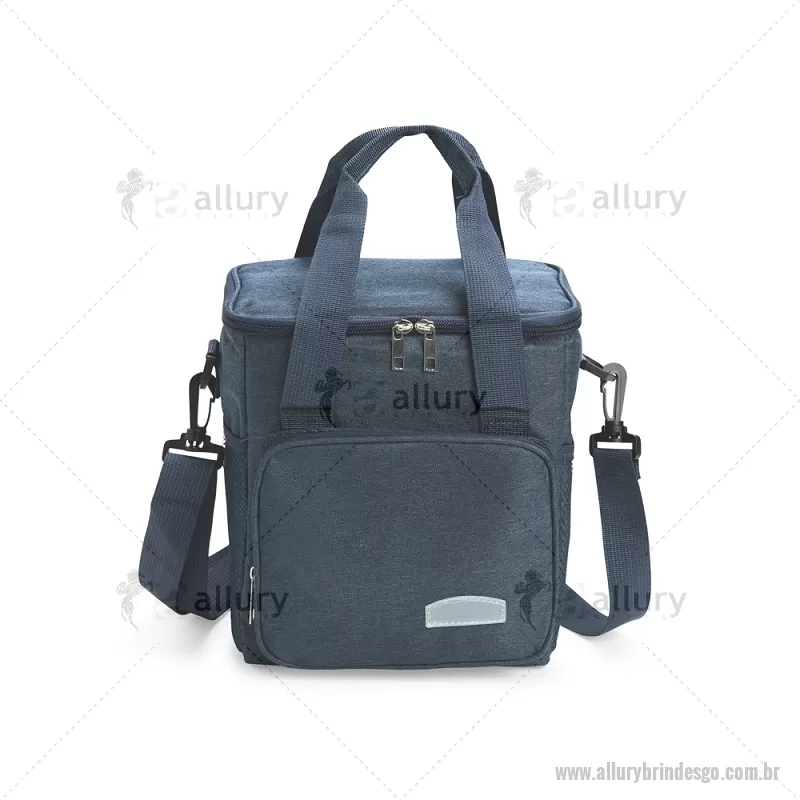 Bolsa térmica de 11 litros feita em Oxford resistente à água, com revestimento interno em PEVA e tampa isolada com folha de alumínio. Possui bolso frontal com zíper, dois bolsos laterais em tela, alças laterais fixas e alça transversal removível. Ideal para manter alimentos e bebidas na temperatura por mais tempo. - - ALLGOBT106