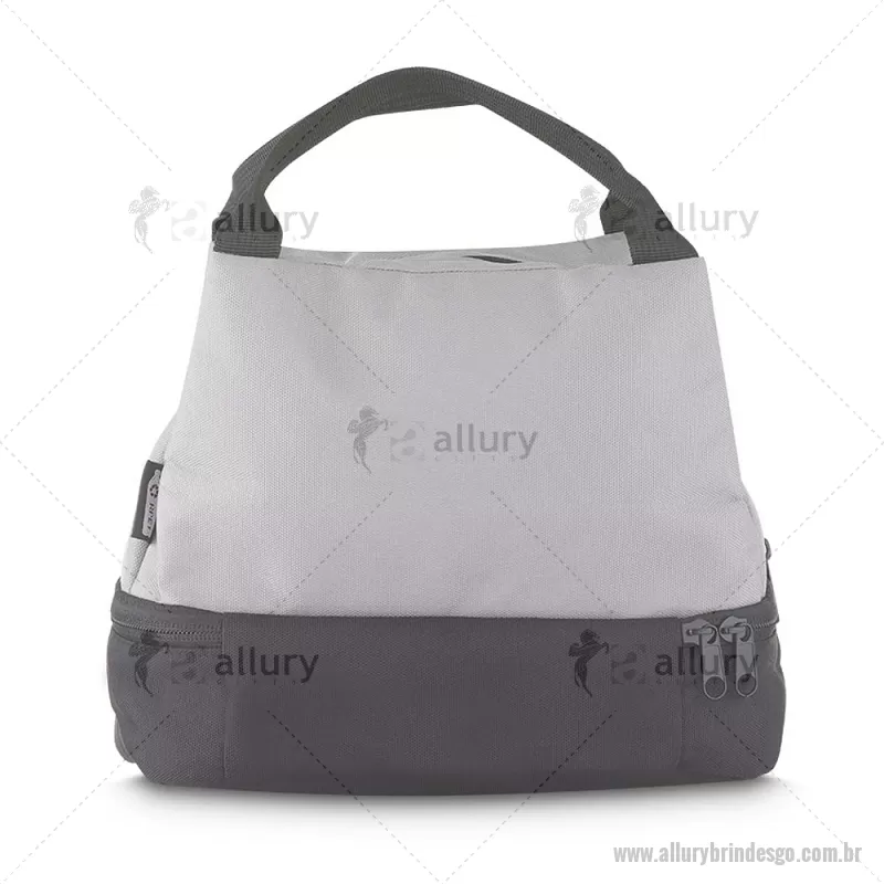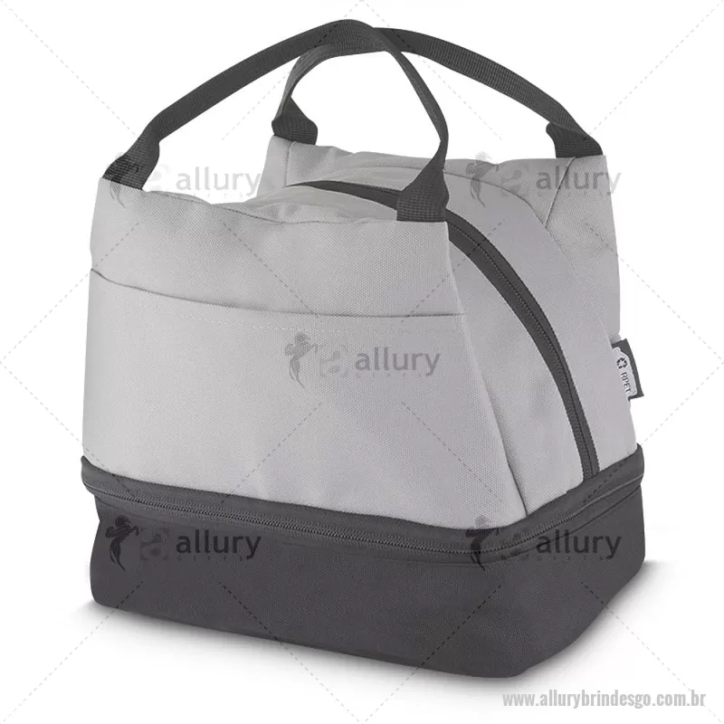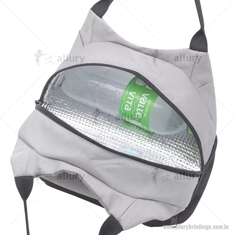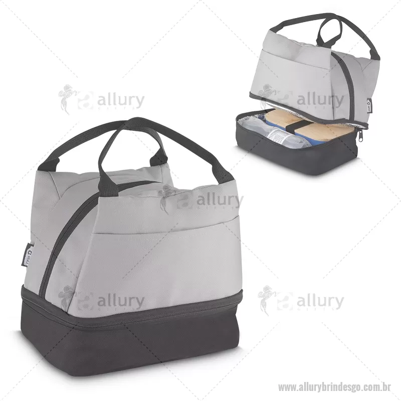 Bolsa térmica 7litros em tecido PET Reciclado com 2 compartimentos térmicos costurados, bolso frontal e alça de mão. Dimensão Produto: 21x24x15cm (AxLxP) Peso do Produto: 0,130kg Volume: 7L - - ALLGOBT094