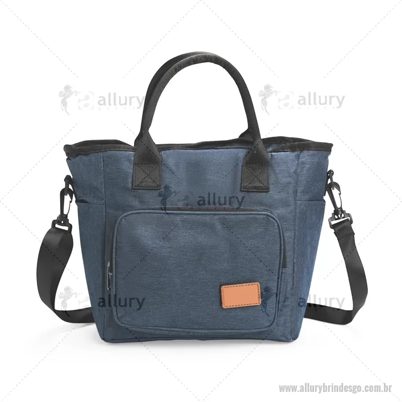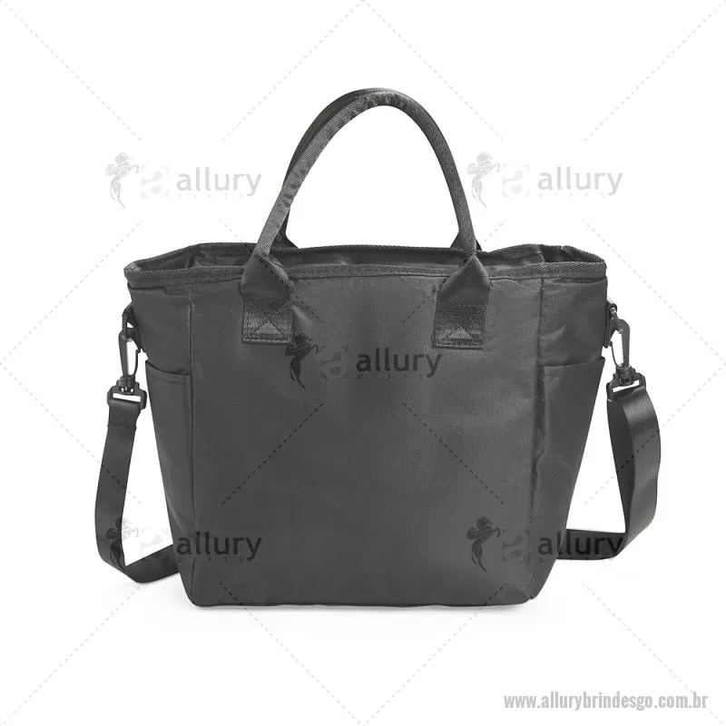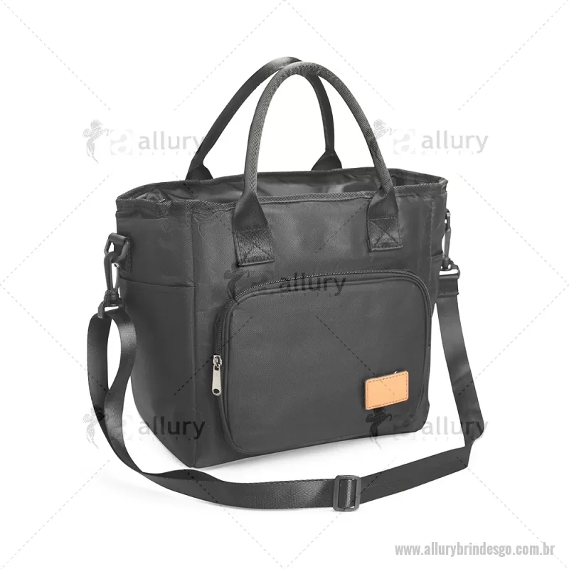 Bolsa térmica de 13 litros feita em Oxford resistente à água, com revestimento interno em PEVA e fechamento em zíper. Possui bolso frontal com plaquinha em couro sintético, dois bolsos laterais, alças de mão fixas e alça transversal regulável com mosquetões. Funcional e ideal para uso diário. - - ALLGOBT104