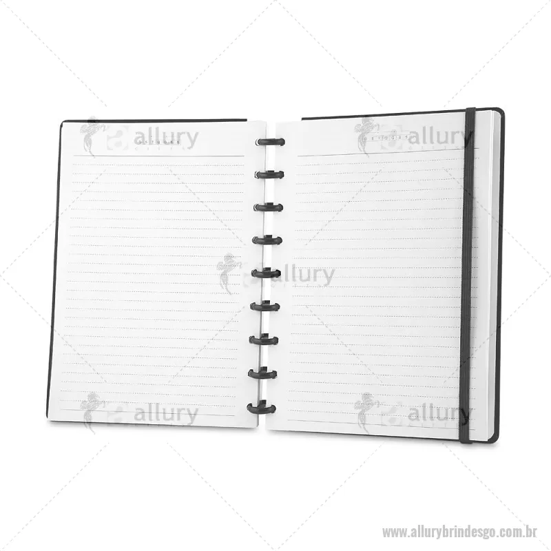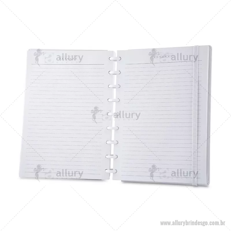 Caderno de anotações com folhas removíveis, capa dura cartonada revestida em material sintético, 80 folhas pautadas 75 g/m², calendário anual, manual de instruções, bolso plástico interno para documentos e elástico para fechamento seguro. Peso do Produto: 0,354kg Dimensão do Produto: 23,5x18cm - - ALLGOCAD035