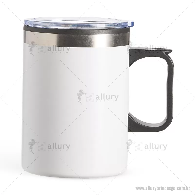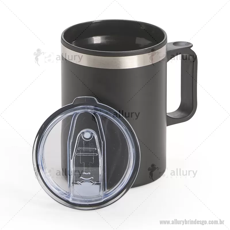 Caneca de 375 ml com interior plástico e revestimento externo em inox, que evita o aquecimento das mãos. Possui tampa com bocal e trava de segurança, além de base emborrachada antiderrapante. Prática e ideal para o dia a dia. - - ALLGOCAN098