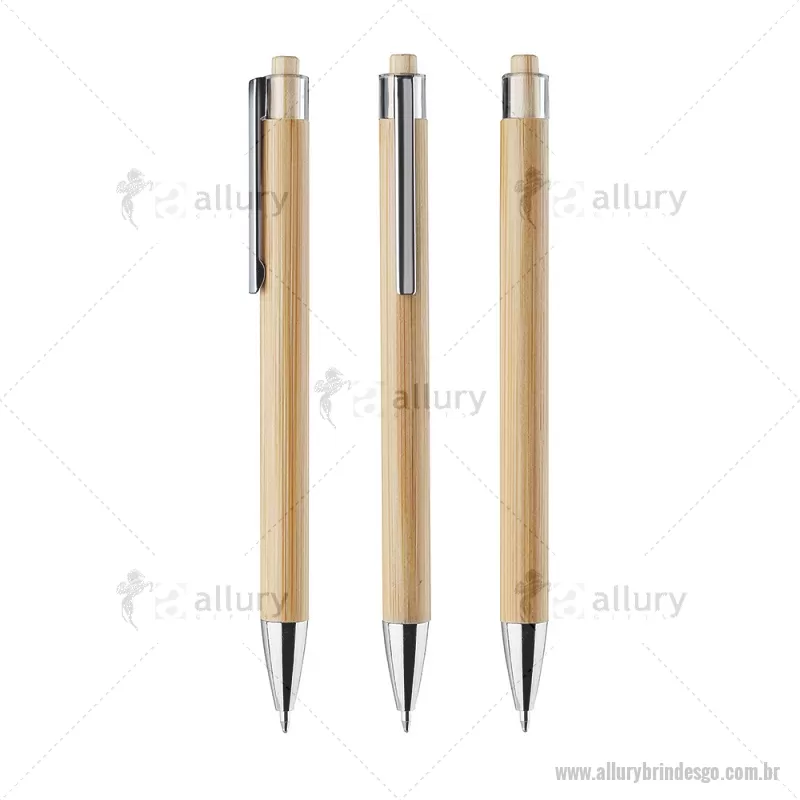 Caneta com corpo em bambu, acionador em bambu com detalhe plástico, ponteira e clipe cromado. Dimensão Produto: 14xø1cm Peso do Produto: 0,007kg - - ALLGOCPECO072