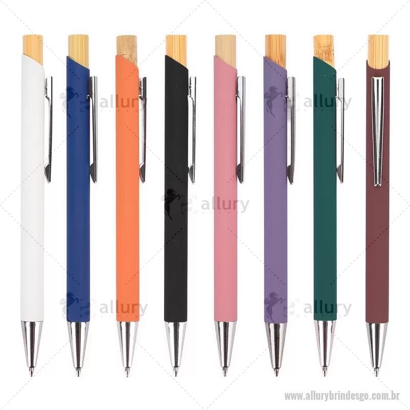 Caneta esferográfica azul 1,0 mm com corpo metálico e acionamento por clique em bambu. Oferece escrita leve, confortável e precisa para o uso diário. - - ALLGOCMT297