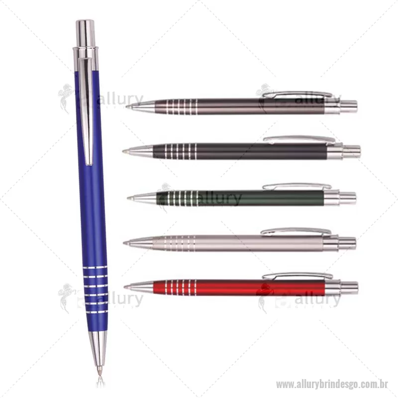Caneta em metal com click, ponteira e alça brilhante, detalhes em pratas. Diversas cores. - - ALLGOCMT010