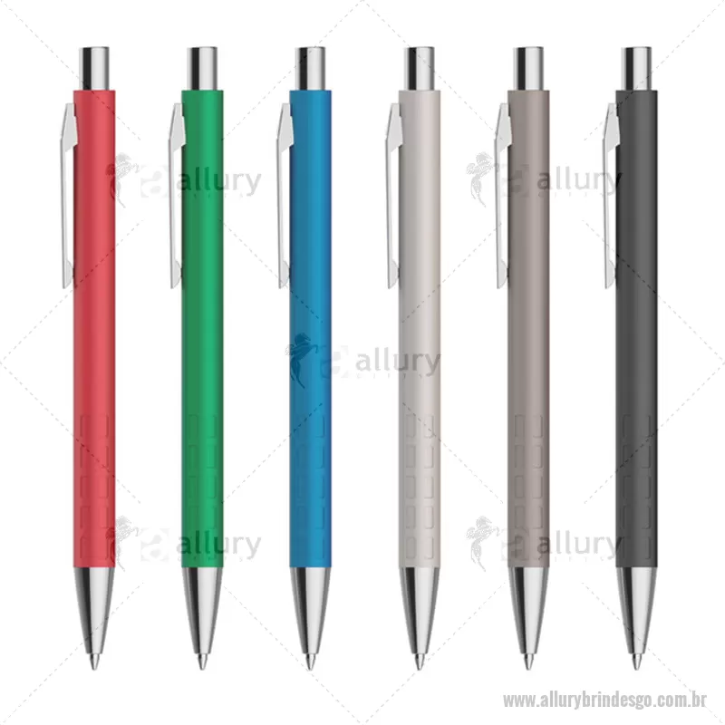 Caneta esferográfica em metal com escrita em azul. - - ALLGOCMT167