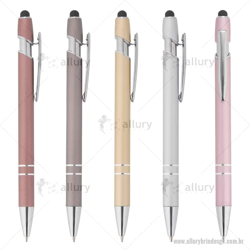 Caneta metálica touchscreen com acionamento por clique, carga esferográfica azul 1.0mm. - - ALLGOCMT226