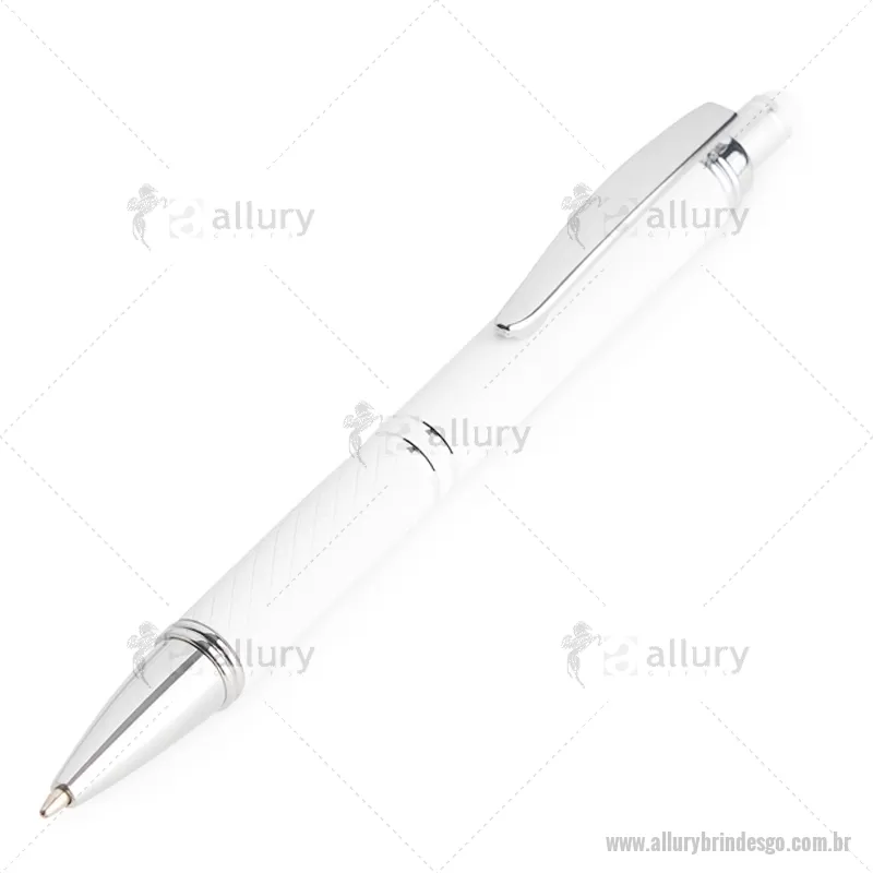 Caneta metálica touchscreen com acabamento similar à borracha e parte inferior texturizada, acionamento por clique e carga esferográfica azul 1.0mm. - - ALLGOCMT230