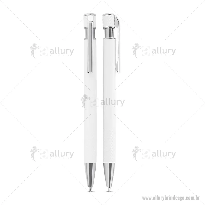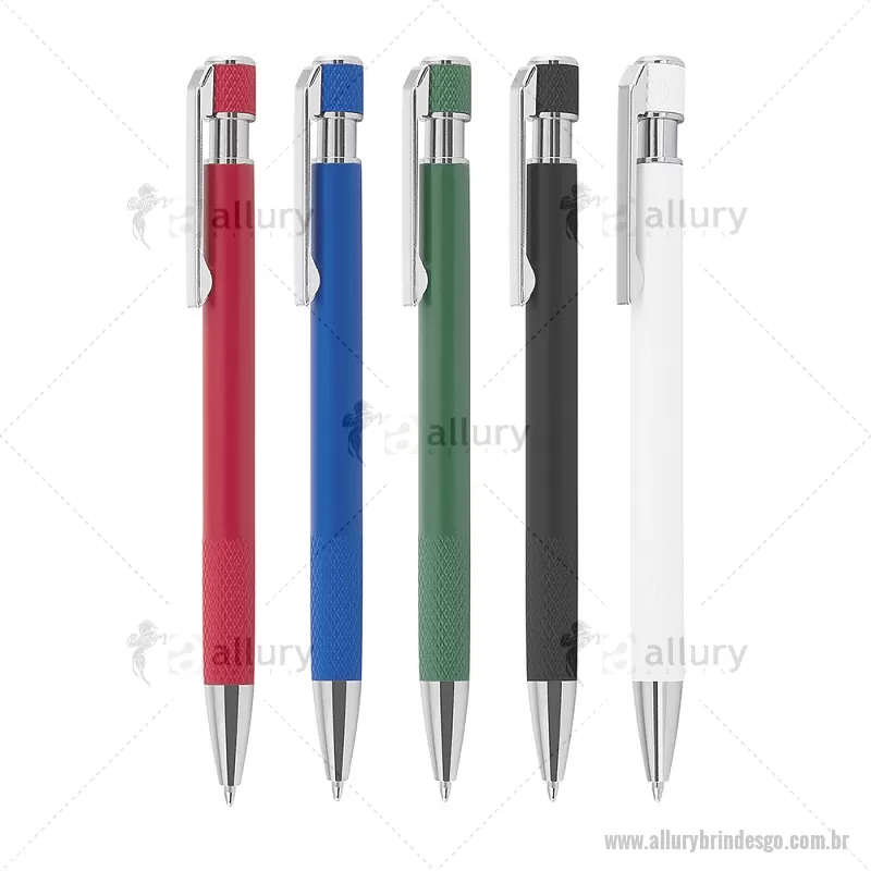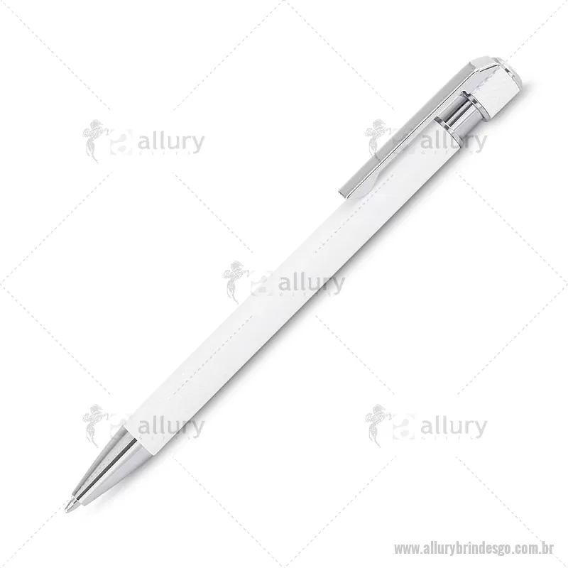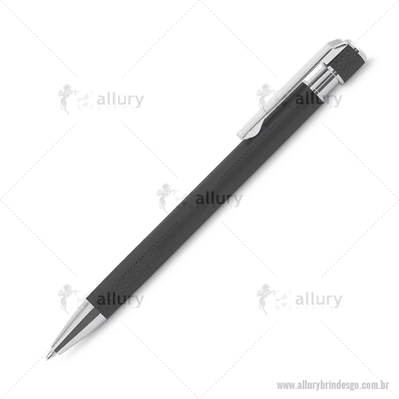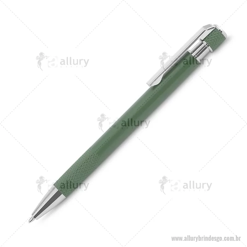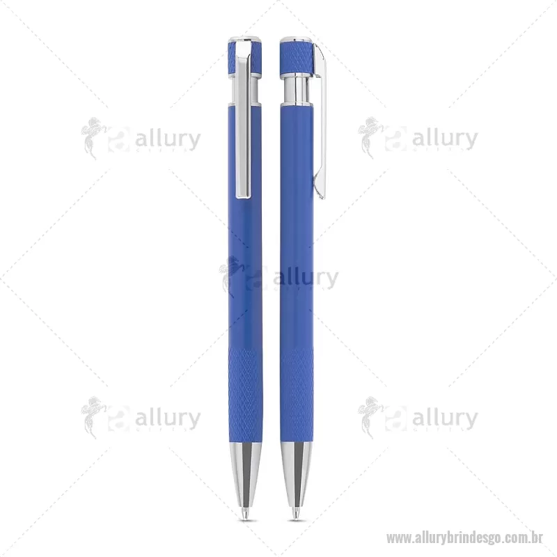 Caneta esferográfica com corpo em alumínio reciclado, acionador e clipe cromado, escrita em tinta azul. Refil substituível tipo Parker. Peso do Produto: 0,016kg Dimensão do Produto: 13,6xø0,9cm - - ALLGOCMT306