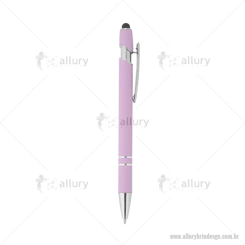 Caneta metálica touchscreen com acabamento similar à borracha, acionamento por clique e carga esferográfica azul 1.0mm. Largura : 1,5 cm x Comprimento : 14,1 cm Peso aproximado (g): 18 - - ALLGOCMT229