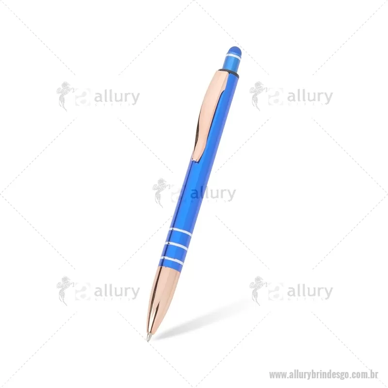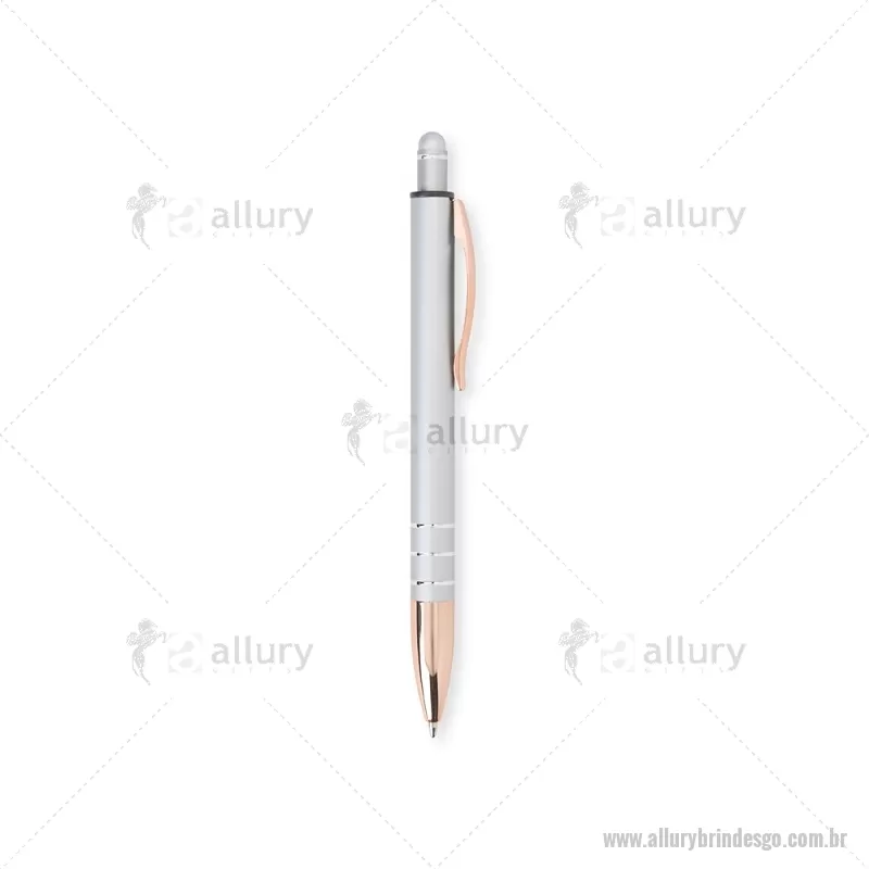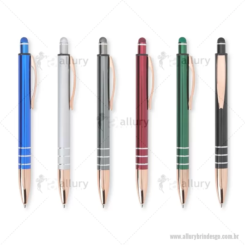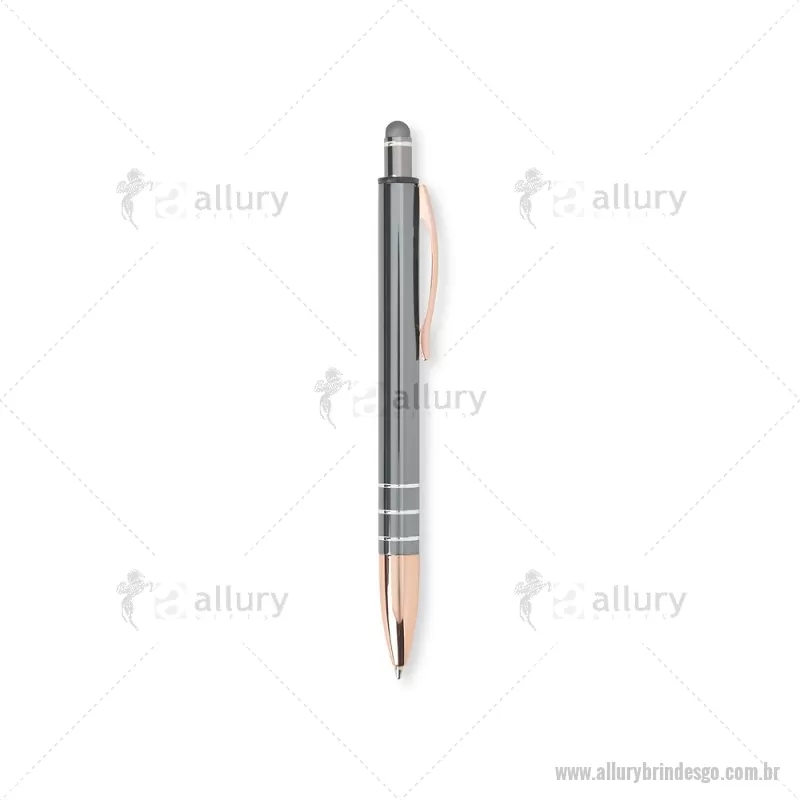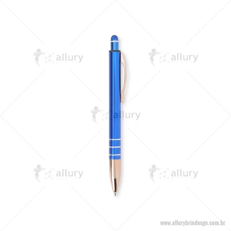 Caneta Metal Touch Caneta metálica com acionador touch, clipe metálico e ponteira plástica. Carga esferográfica azul 1.0mm e acionamento por clique. Largura : 1,6 cm x Comprimento : 14,4 cm Peso aproximado (g): 17 - - ALLGOCMT291