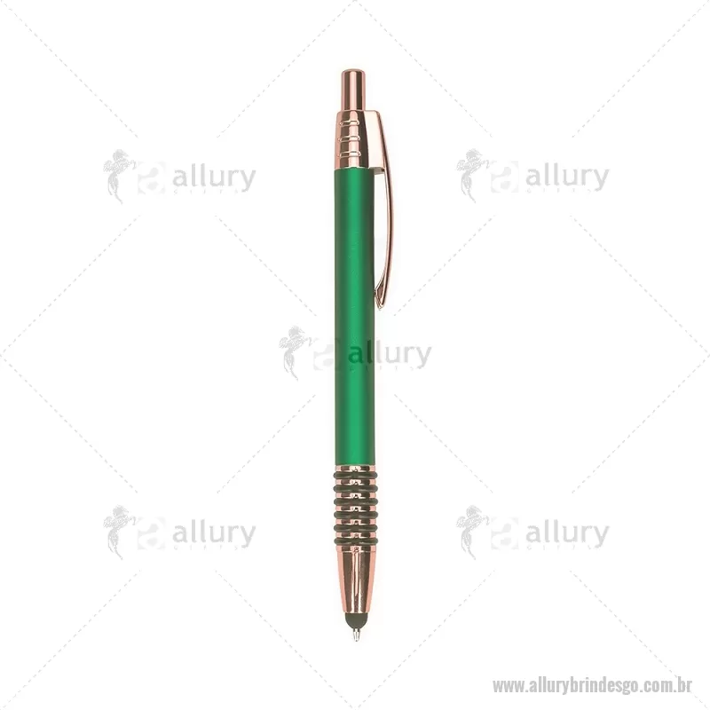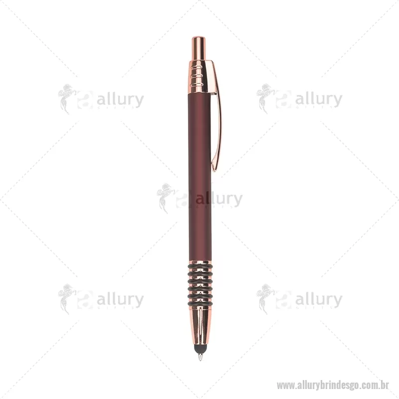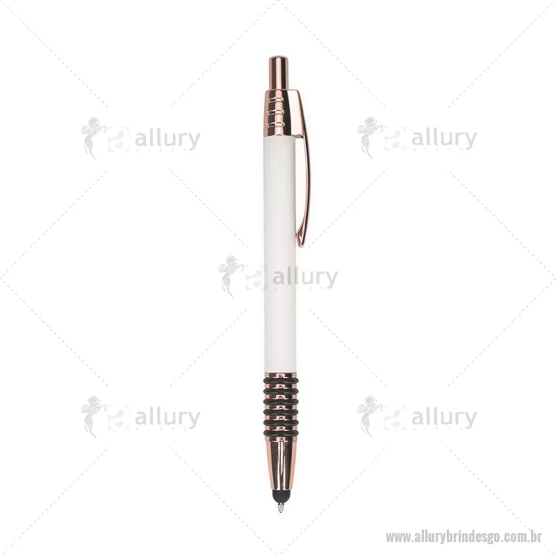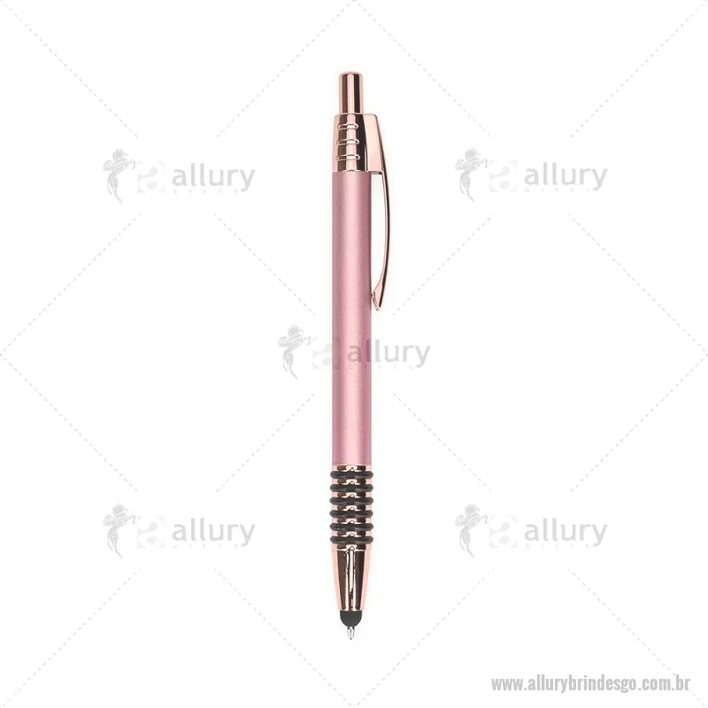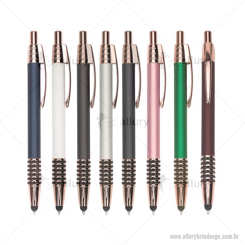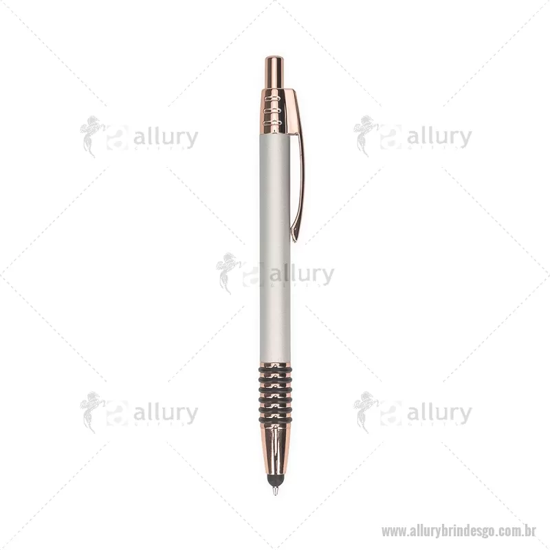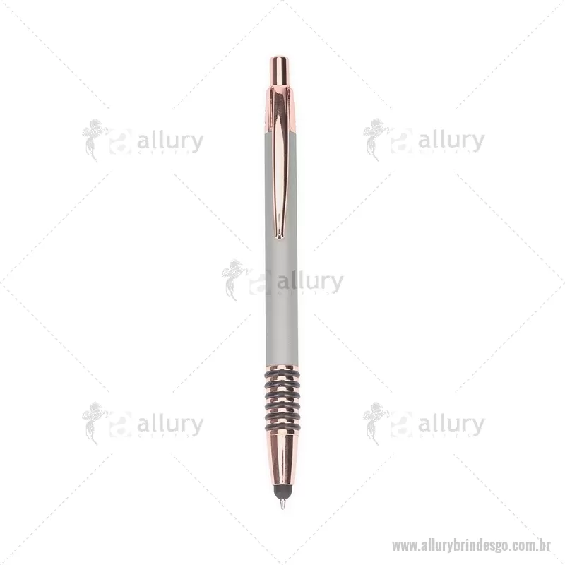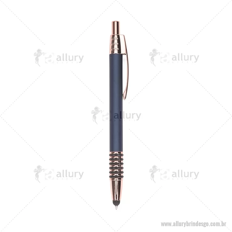 Caneta metálica com detalhes emborrachados no corpo, garantindo maior conforto na escrita. Possui carga esferográfica azul 1,0 mm, acionamento por clique e ponteira touch para uso em telas sensíveis ao toque. Prática e versátil para o dia a dia. - - ALLGOCMT298