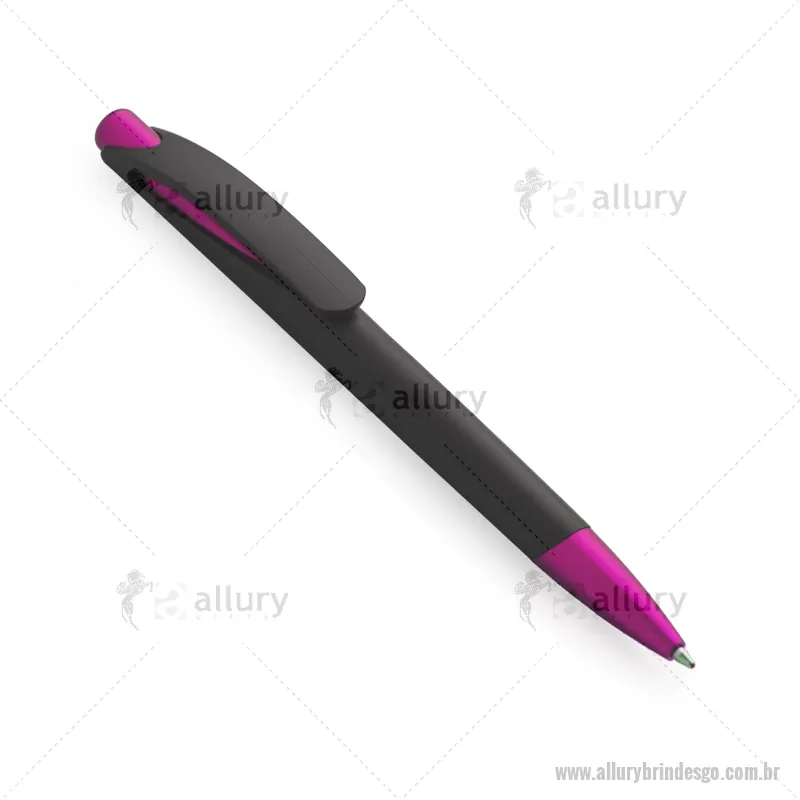 Caneta Plástica Esferográfica Personalizada Preta Fosca com Detalhes coloridos Brilhantes. Com clip plástico e detalhe vazado interno, acionamento da ponteira por clique, tinta azul. Caneta leve que pode ser usado no dia a dia, ótimo brinde promocional. - - ALLGOCPL054