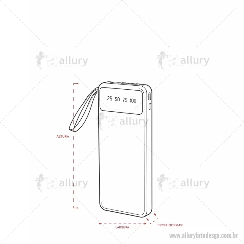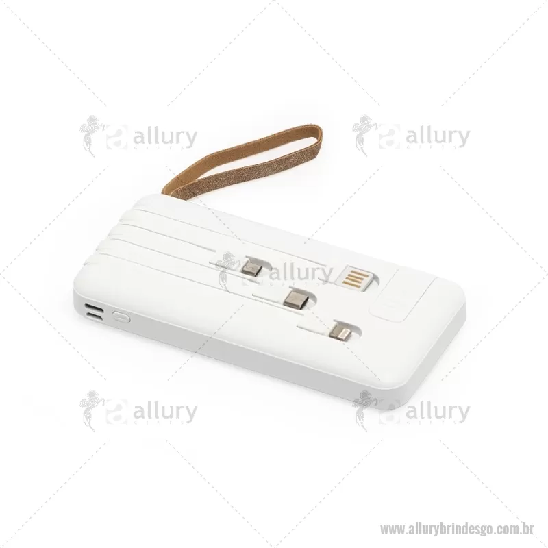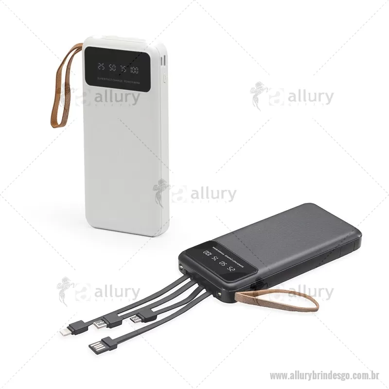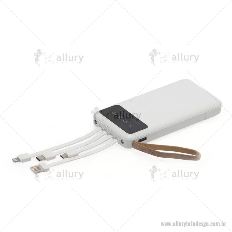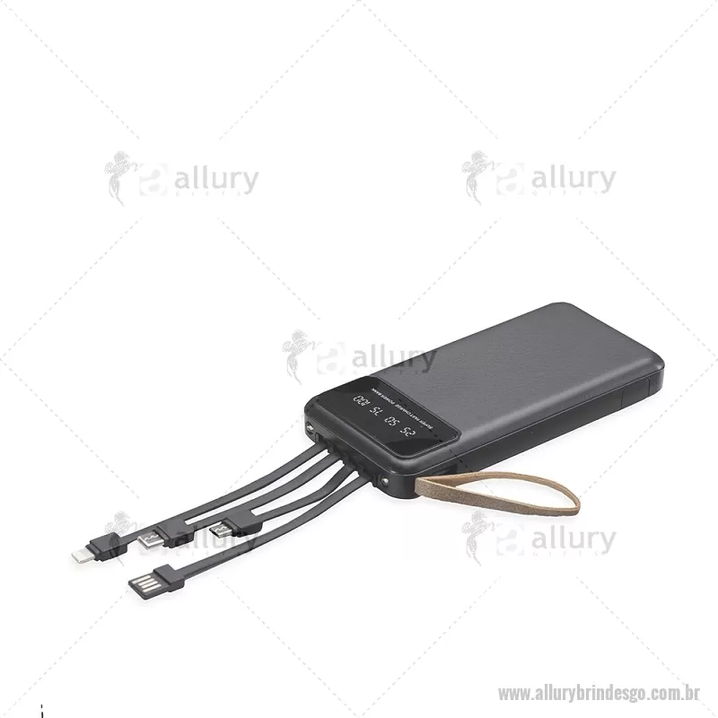 Power Bank 10.000mAh com Lanterna e Multissaídas Descrição: Carregador power bank de 10.000mAh com lanternas, múltiplas saídas e suporte para celular. Fabricado em plástico com display integrado, este power bank vem equipado com quatro cabos de carregamento, eliminando a necessidade de transportar cabos extras. Compatível com entradas V8, Tipo-C, Lightning e USB, praticidade é o sinônimo deste carregador. Com alça de couro sintético e um suporte funcional para celular, estilo gaveta, o power bank possui capacidade real de 6.000mAh para manter os dispositivos sempre carregados. Acompanha cabo USB-V8. medidas: Altura : 14,4 cm x Largura : 6,8 cm x Espessura : 2 cm Peso aproximado (g): 251 - - ALLGOTEC550