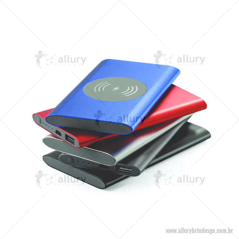 Bateria portátil Sem Fio e carregador wireless. Alumínio. Bateria polímero de lítio. LED: indicador de carga. Capacidade: 4.000 mAh. Tempo de vida ≥ 500 ciclos. Entrada 5V/2A e saída 5V/2A. Incluso cabo USB/micro USB para carregar a bateria. Fornecido em caixa presente. 123 x 70 x 10 mm. Celular descarregado é algo que incomoda demais, principalmente se você precisa estar sempre conectado, usa muito o WhatsApp, acessa as redes sociais com frequência e vive tirando fotos para registrar seus principais momentos. Para evitar esse problema, o Power Bank representa uma solução bem prática. Mas o que é Power Bank Wireless? Trata-se de um acessório que serve para recarregar a bateria do celular sempre que necessário, bastando aproxima-lo do seu aparelho com a tecnologia por indução. - - ALLGOTEC393