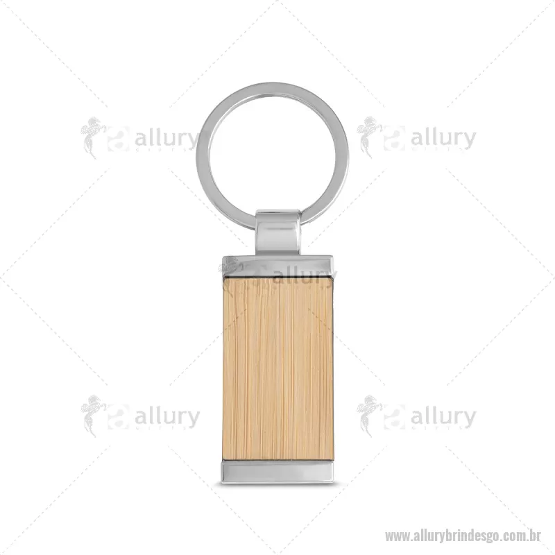 Chaveiro retangular em bambu com revestimento em metal. Fornecido com bolsa em cartão kraft. 22 x 47 x 5 mm - - ALLGOCHV197