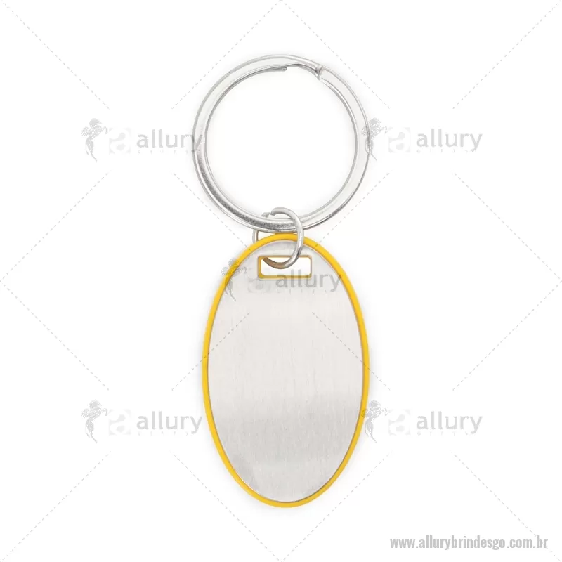 Chaveiro com detalhe plástico e chapa metálica, personalizável frente e verso. Altura : 5,4 cm x Largura : 3,3 cm x Comprimento : com argola 9,1 cm Peso aproximado (g): 13 - - ALLGOCHV188