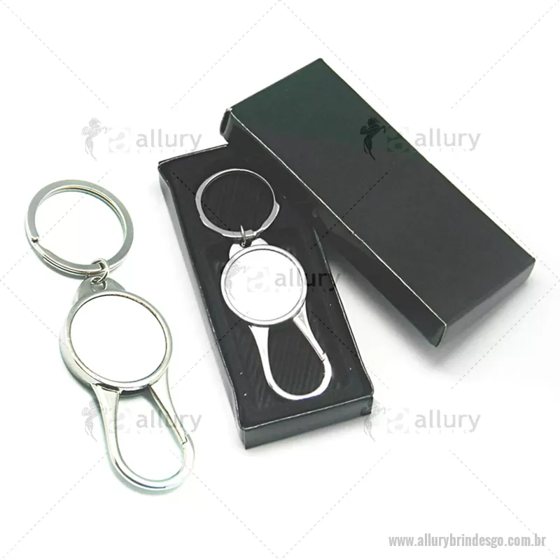 Chaveiro de Metal Redondo c/ Mosquetão Personalizado. Embalagem, caixinha preta. - - ALLGOCHV079