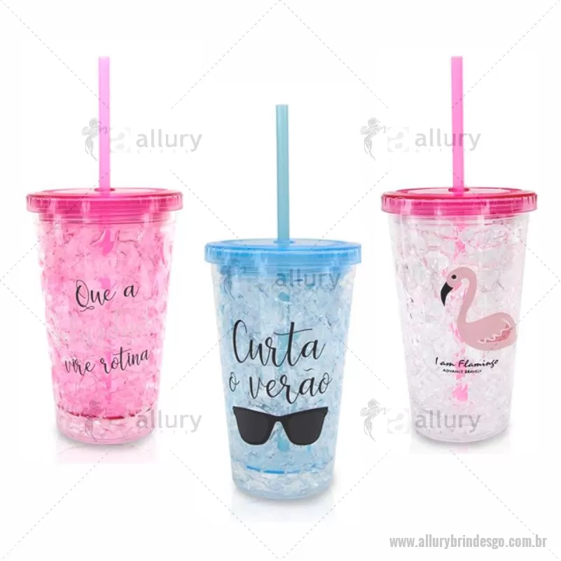 Copo gel personalizado. Possui gel congelando interno, capacidade de 540 ml, resistente ele é fabricado em PS cristal, possui tampa colorida rosqueável e canudo biodegradável. Produto vem embalado individualmente em caixas de papelão para presente e a personalização da marca é feita em silkscreen em área nobre. - - ALLGOCPO054
