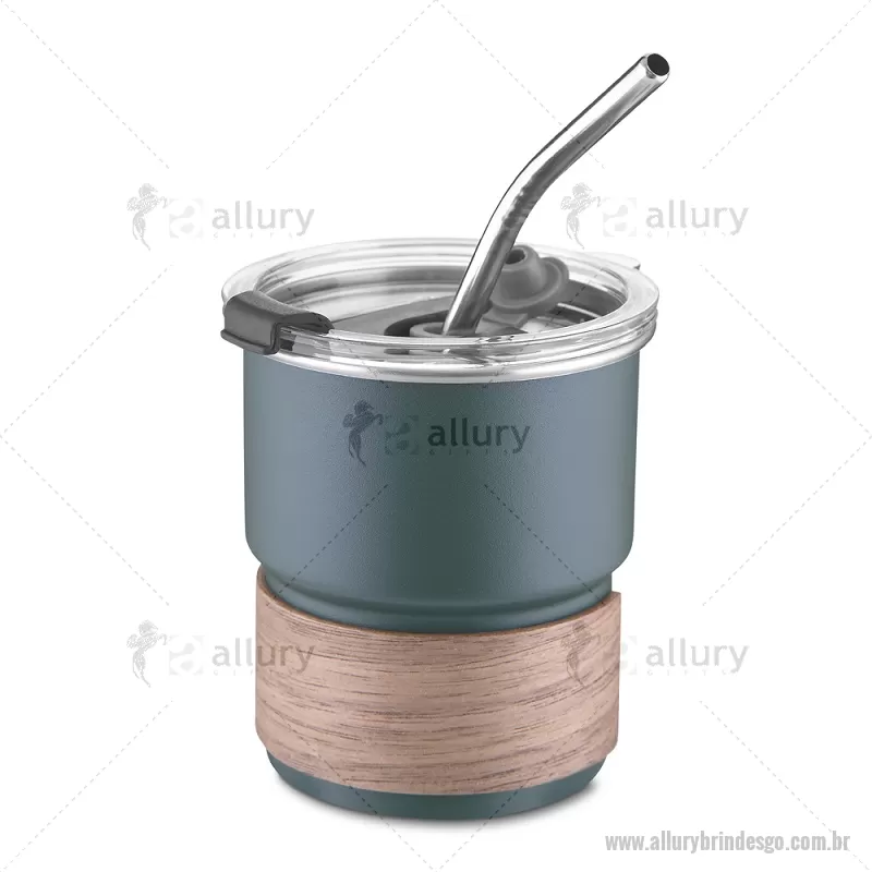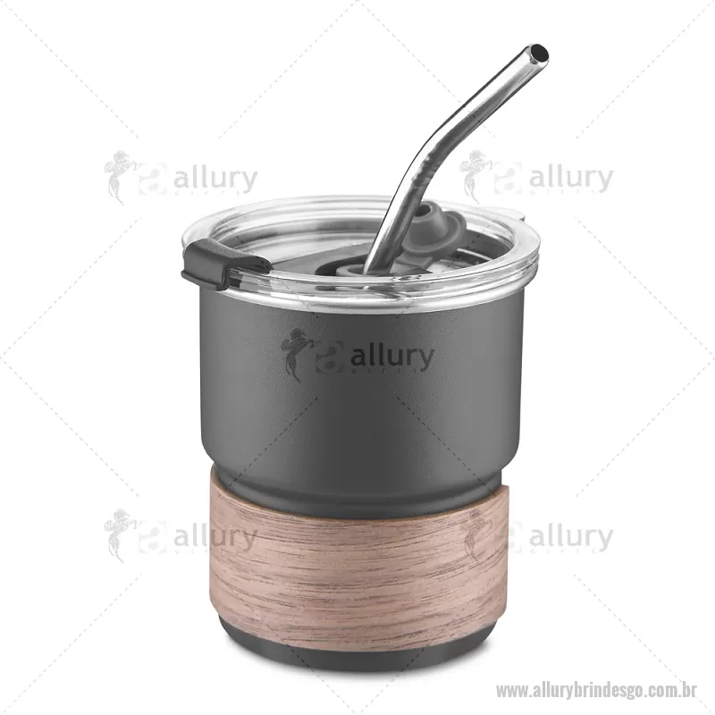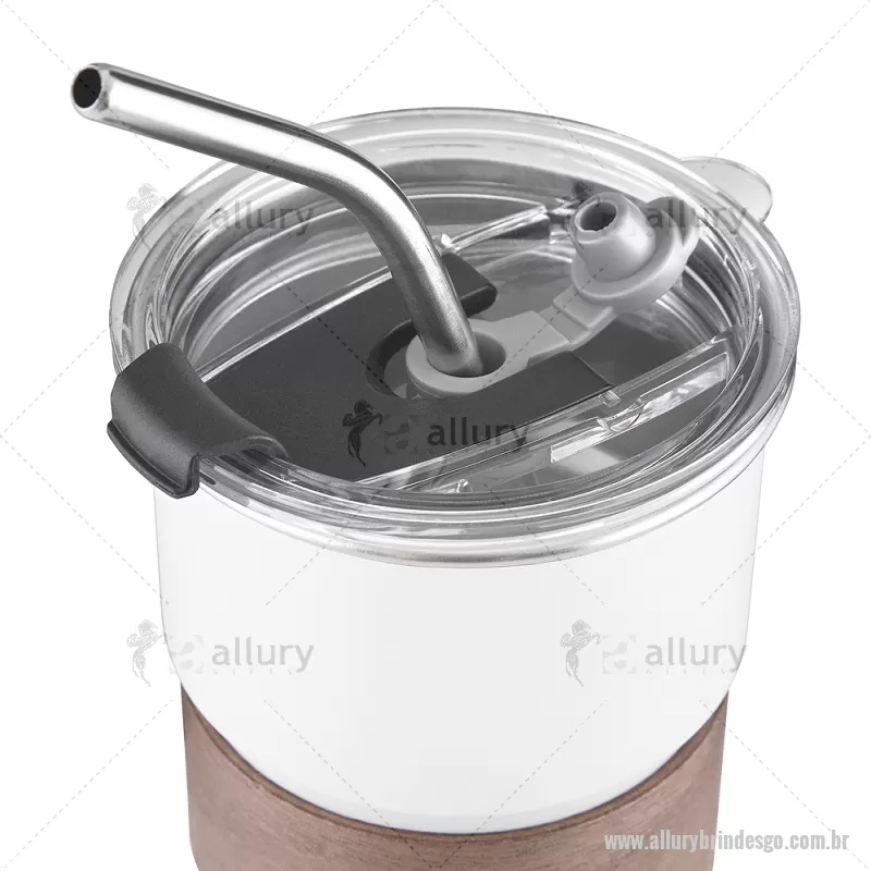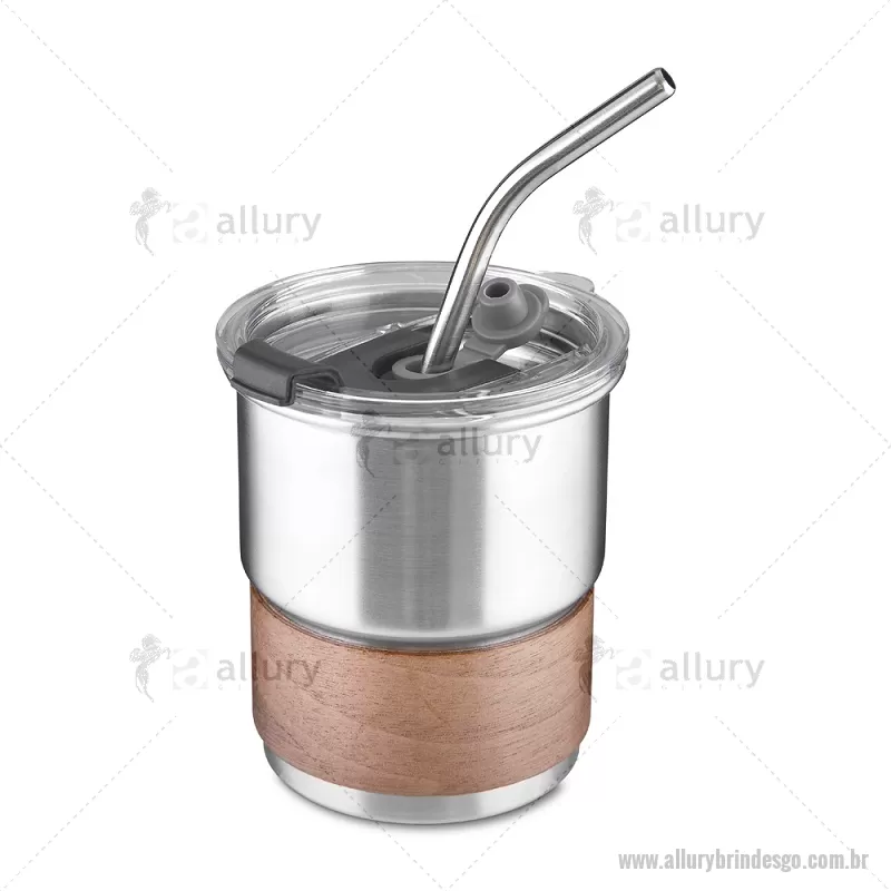 Copo em inox com Canudo Copo de parede simples em aço inox 304 com capacidade de 250ml, com canudo em inox. Tampa em plástico poliestireno (PS) que também possui um bico como forma alternativa de uso. Com pegador em fibra de noz. Possui acabamento externo com pintura fosca. Peso do Produto: 0,100kg Dimensão do Produto: 9xø7,5cm - - ALLGOCPO150