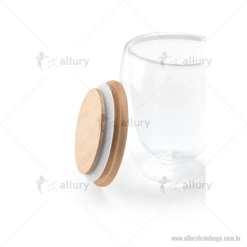 Copo de viagem em vidro borossilicato com parede dupla isolada a ar e tampa em bambu (térmico). Copo com capacidade até 350 mL, ideal para líquidos frios ou quentes, tendo uma tampa com isolante em silicone que facilita o transporte do copo evitando respingo. Apto para ir ao microondas e à máquina de lavar, retirando a tampa. Food grade. Fornecido em caixa presente de papel kraft. medidas copo: ø91 x 119 mm - - ALLGOCPO118