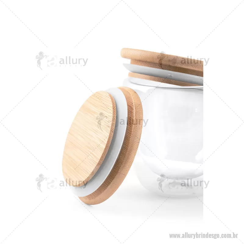 Copo de viagem em vidro borossilicato com parede dupla isolada a ar e tampa em bambu (térmico). Copo com capacidade até 250 mL, ideal para líquidos frios ou quentes, tendo uma tampa com isolante em silicone que facilita o transporte do copo evitando respingo. Apto para ir ao microondas e à máquina de lavar, retirando a tampa. Food grade. Fornecido em caixa presente de papel kraft. medidas copo: ø89 x 91 mm - - ALLGOCPO119