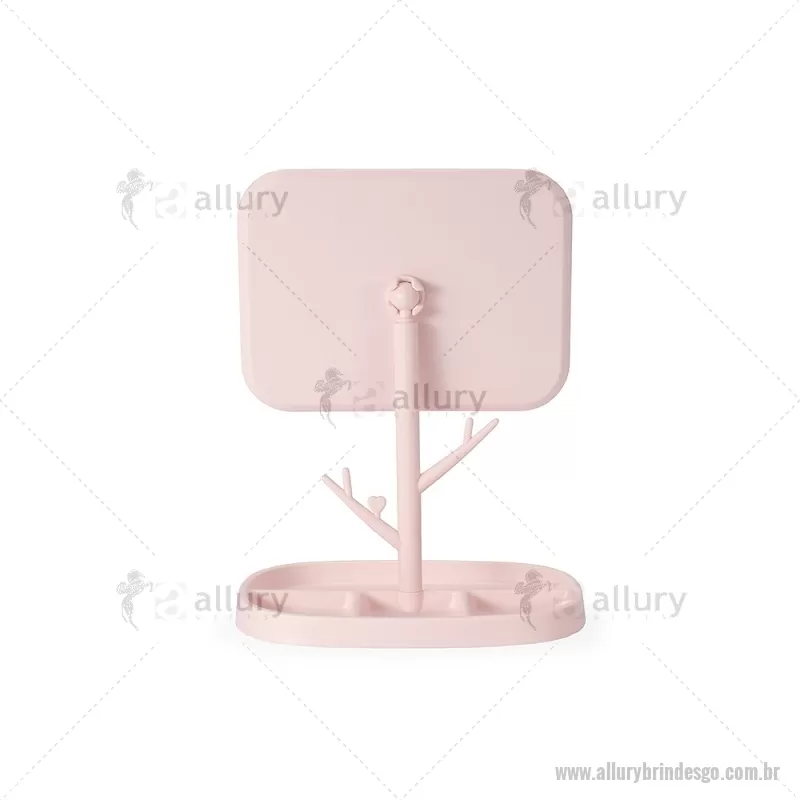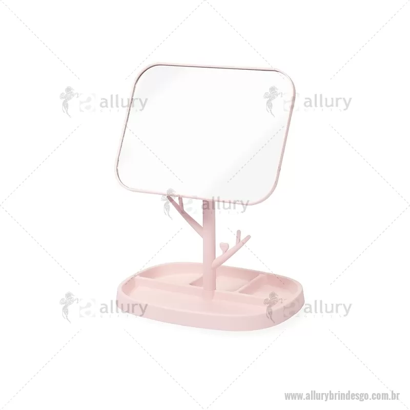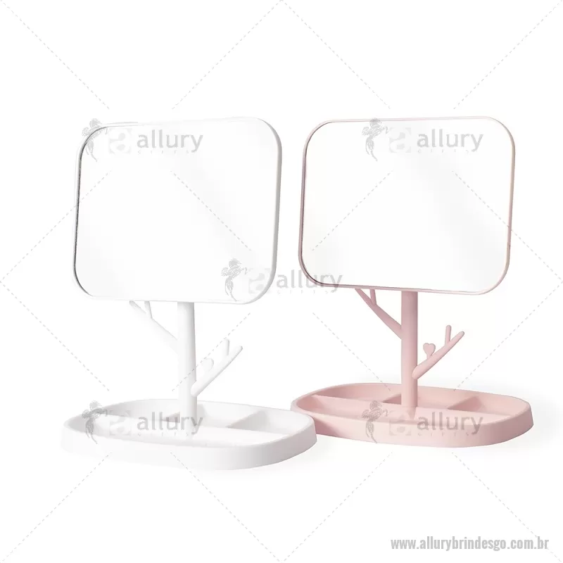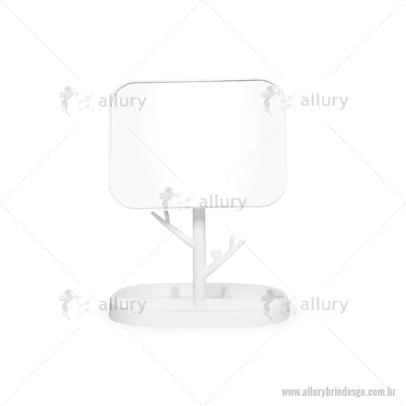 Espelho de Mesa Plástico retangular e estrutura fácil de montar feita em plástico. Conta com pedestal giratório que permite ajustar o espelho em diferentes ângulos e posições. Além disso, possui ganchos laterais e quatro divisórias na base para organizar objetos. Altura : 30 cm x Largura : 15,5 cm x Comprimento : 20,5 cm Peso aproximado (g): 277 - - ALLGOFEM120