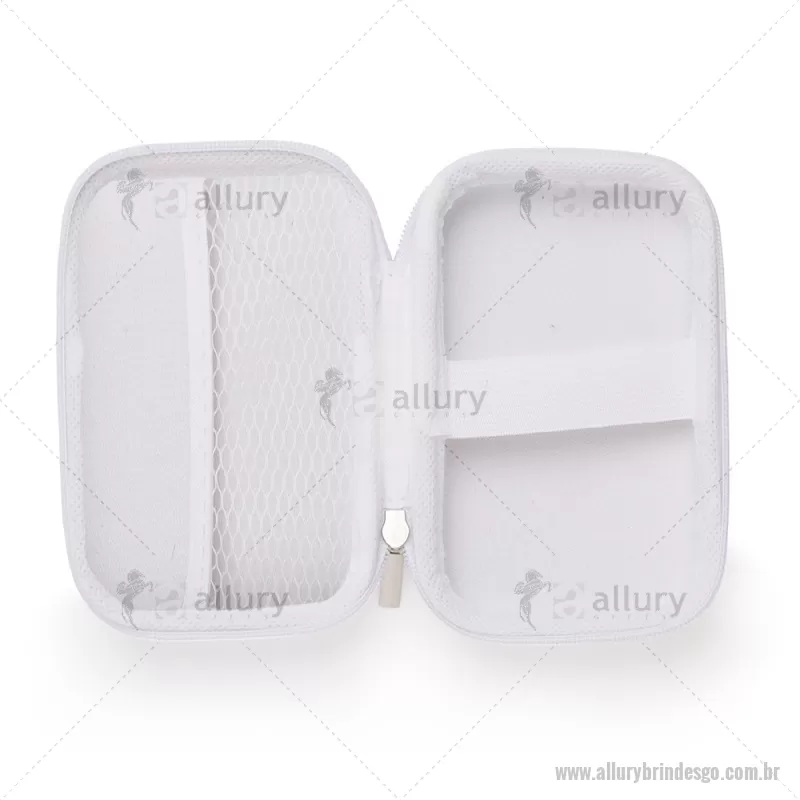 Estojo couro sintético com zíper, possui rede interna e elástico de nylon. Case utilizada para montar kits tecnológicos.