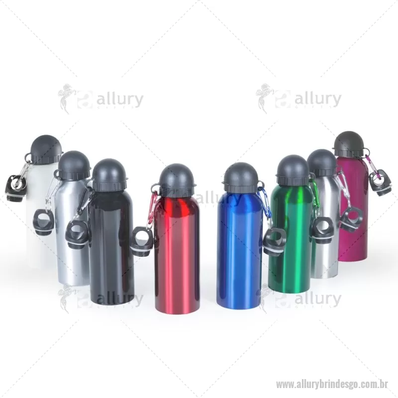 Squeeze de metal com capacidade p/ 500 ml inox com pintura metalizada, tampa rosqueável preta e acompanha uma segunda tampa com mosquetão (não é térmico). Medidas produtos: 21,3 cm x 6,5 cm Peso aproximado (g): 142 Consultar cores disponíveis. Gravação em Laser. - - ALLGOSQM008