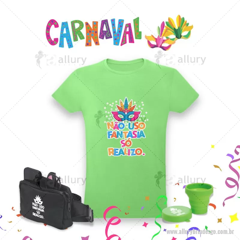 Kit Carnaval 3 Peças Contém: 1 Pochete de Nylon Impermeável, oferece proteção contra a água, garantindo que os itens essenciais fiquem protegidos. Com dois compartimentos com zíper, sendo o principal com um bolso de malha elástica, é possível organizar dinheiro, chaves, fones de ouvido, maquiagens e muito mais. As alças ajustáveis. - Gravação em Silk screen 1 cor (POC009) 1 Copo sanfonado. Copo retrátil com capacidade de 150ml, livre de BPA. Contém tampa plástica de encaixe com acesso para chaveiro. - Gravação em Silk screen 1 cor (CPO140) 1 Camiseta unissex de corte regular em malha 100% algodão (135 g/m2) com fio 30/1 misto. Com gola em ribana 1,5x1,5 com fita de reforço e com costura dupla nas mangas, barra de fundo e laterais. Tamanhos: P, M, G, GG. - Gravação em Transfer Colorido (CMS005) * Verificar cores de produtos Disponíveis. - - ALLGOKIT030